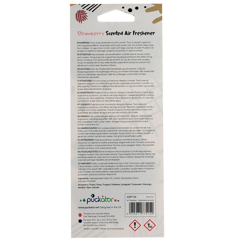 - Safety Information: Keep away from children. Full safety and fragrance information is shown on the product packaging. Do not rest or lean against any surface as the oils in the air freshener can cause staining or damage.