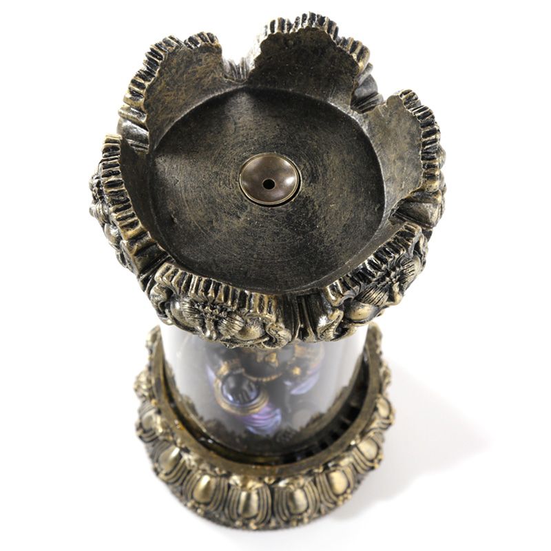 - Product Information: Backflow incense flows down through a backflow burner and creates a mist around the product. This item must be placed on a heatproof surface. When backflow incense burns the mist it creates can leave a light residue on the burner and the surface the burner is placed on. This is from natural oils and resins within the incense and can be wiped clean with a damp cloth. Never leave burning incense unattended.