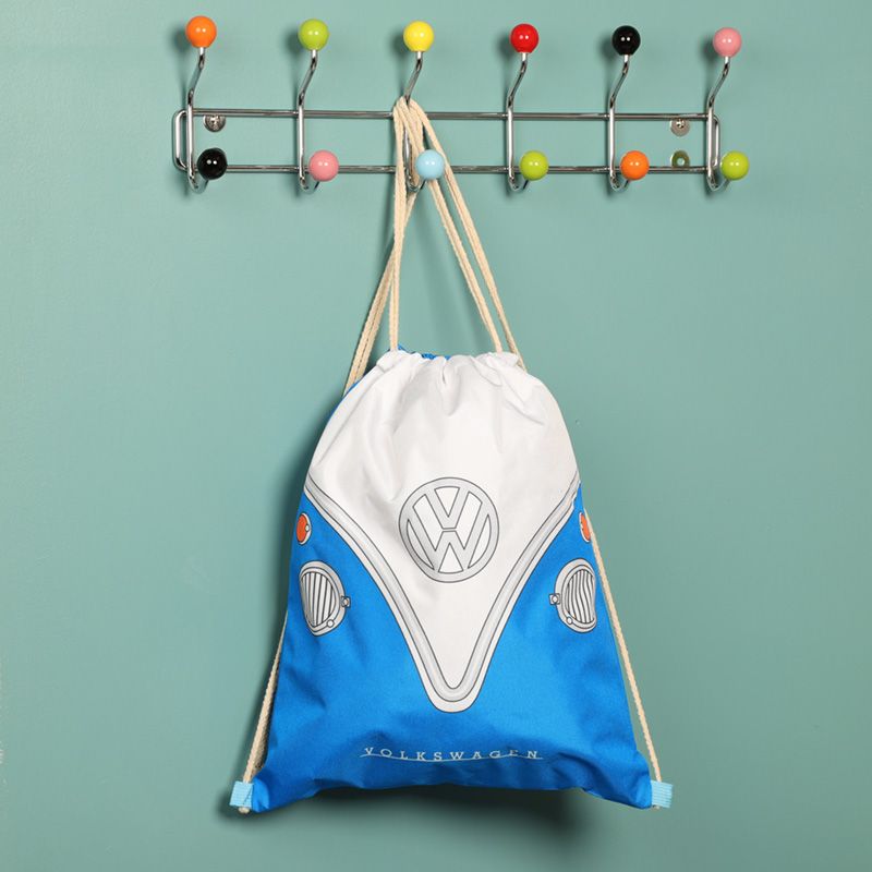 Volkswagen VW T1 Camper Bus Blue Drawstring Bag