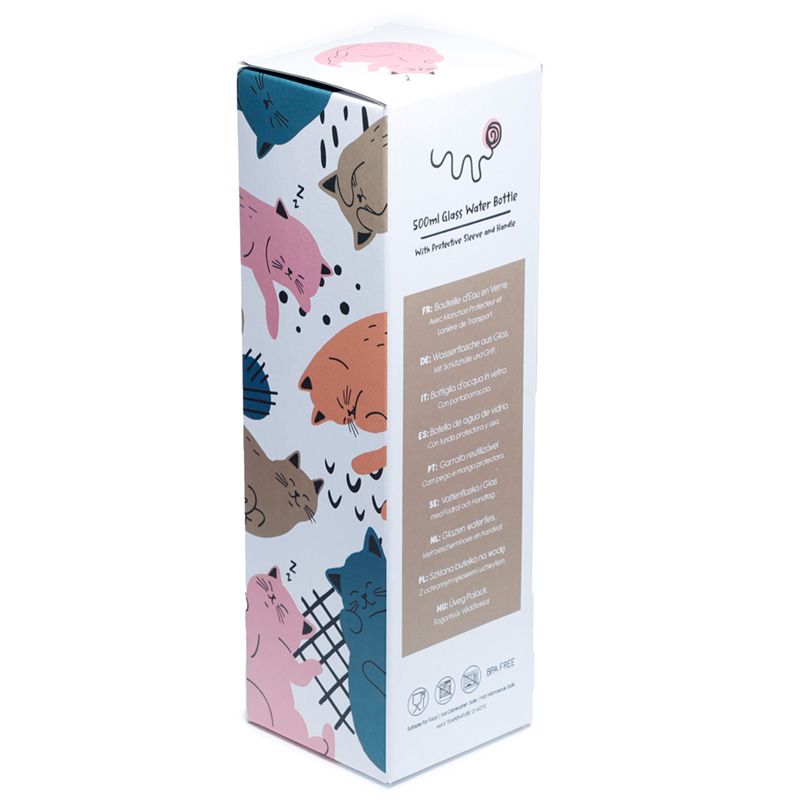 Cat's Life Glass Water Bottle with Protective Sleeve