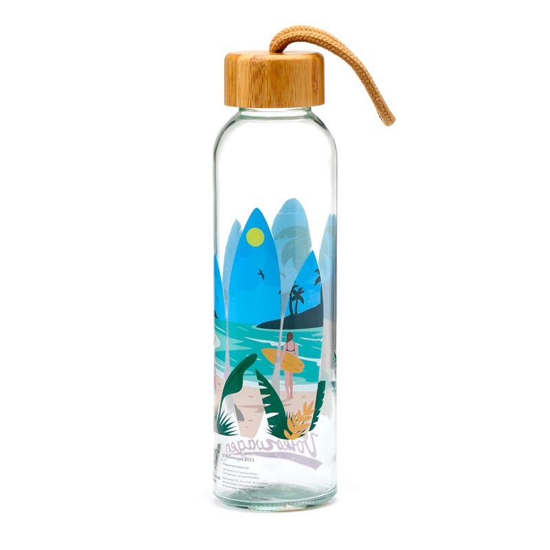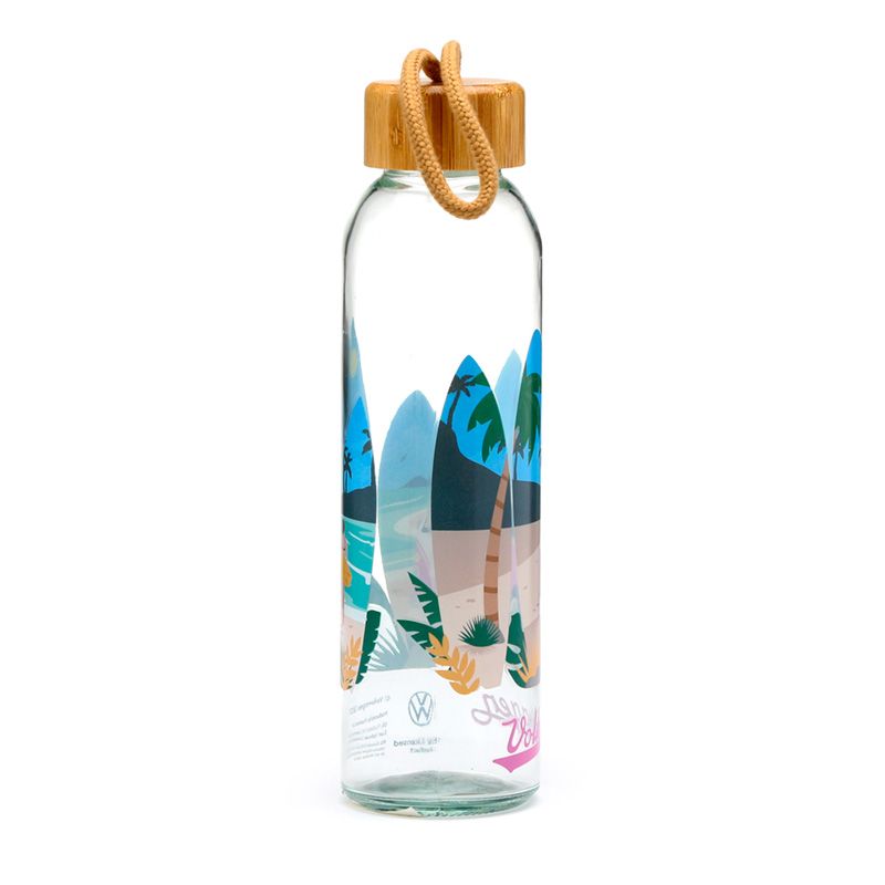Volkswagen VW T1 Camper Bus Waves are Calling 500ml Glass Water Bottle