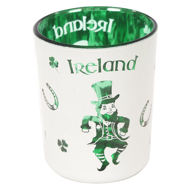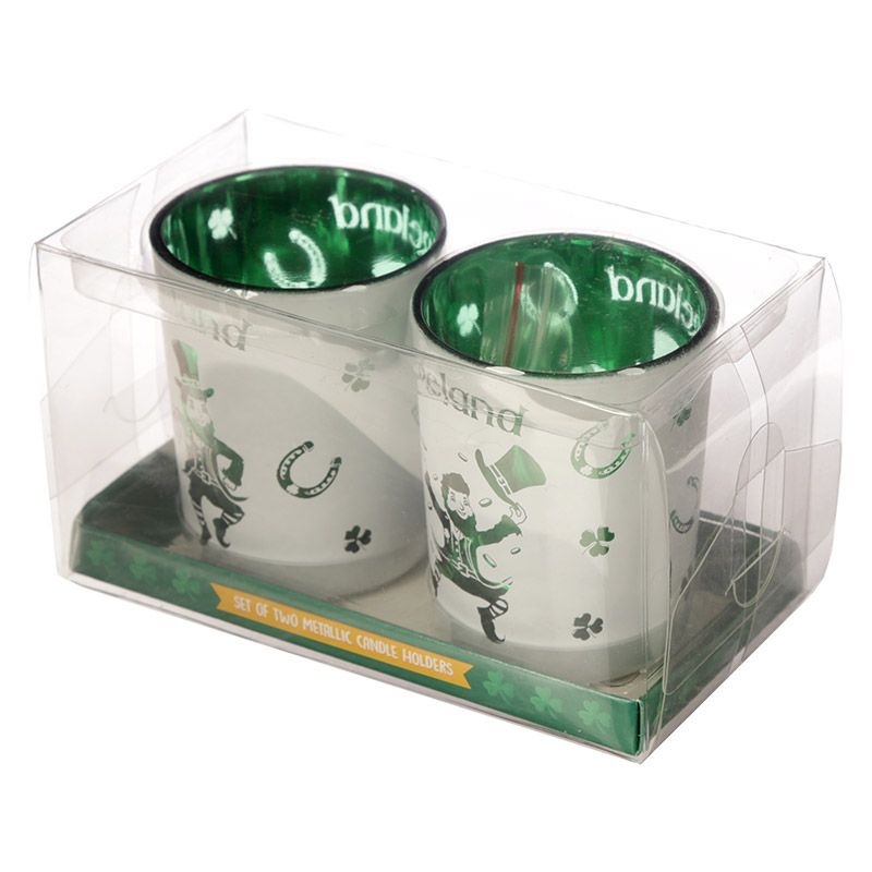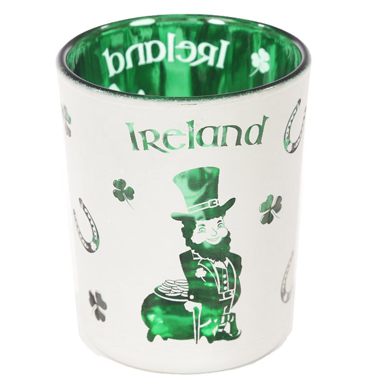Lucky Leprechaun Ireland Set of 2 Glass Tea Light & Votive Candle Holders