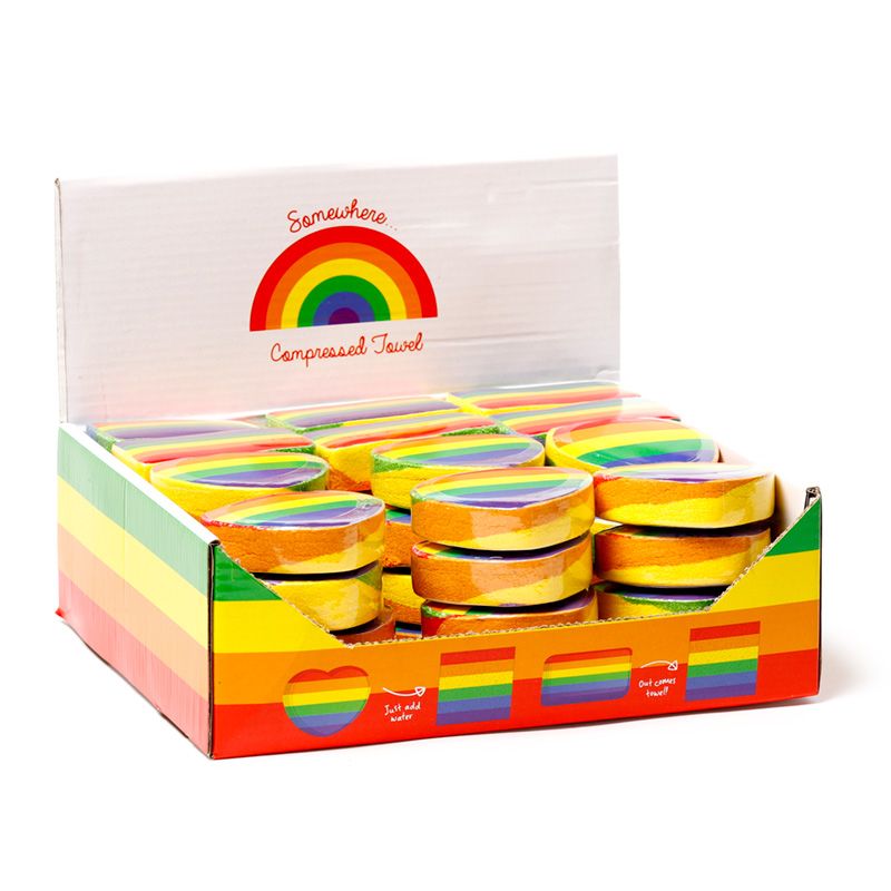 Somewhere Rainbow Stripes Compressed Travel Towel