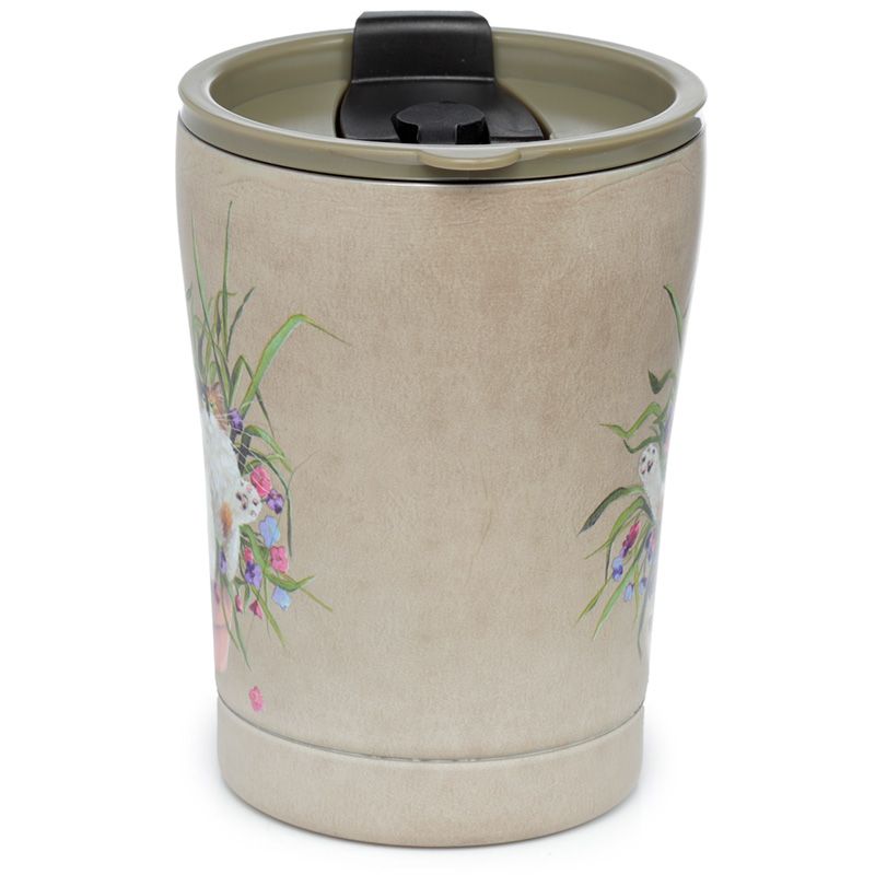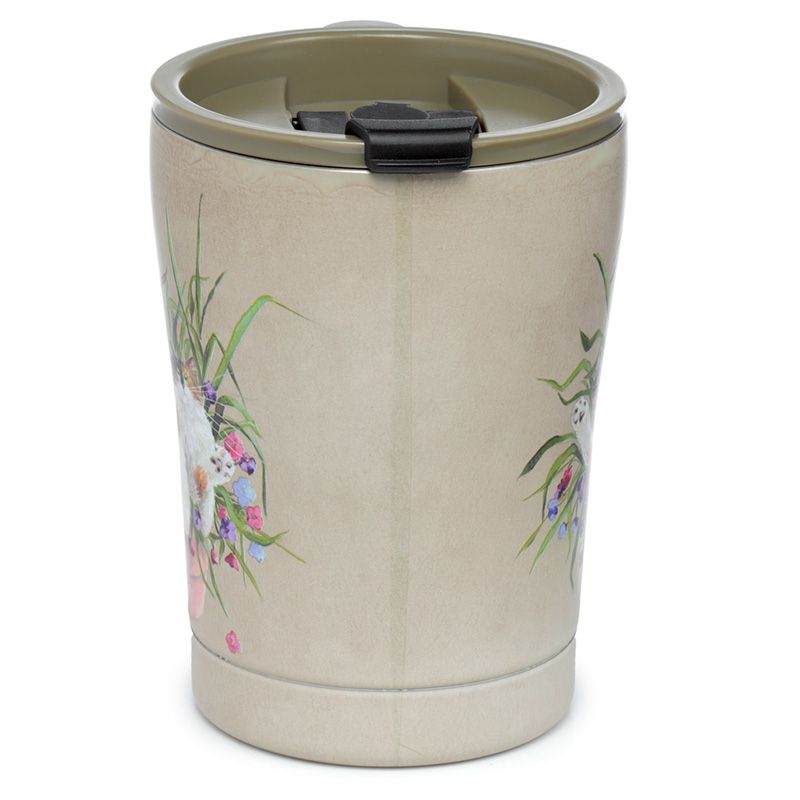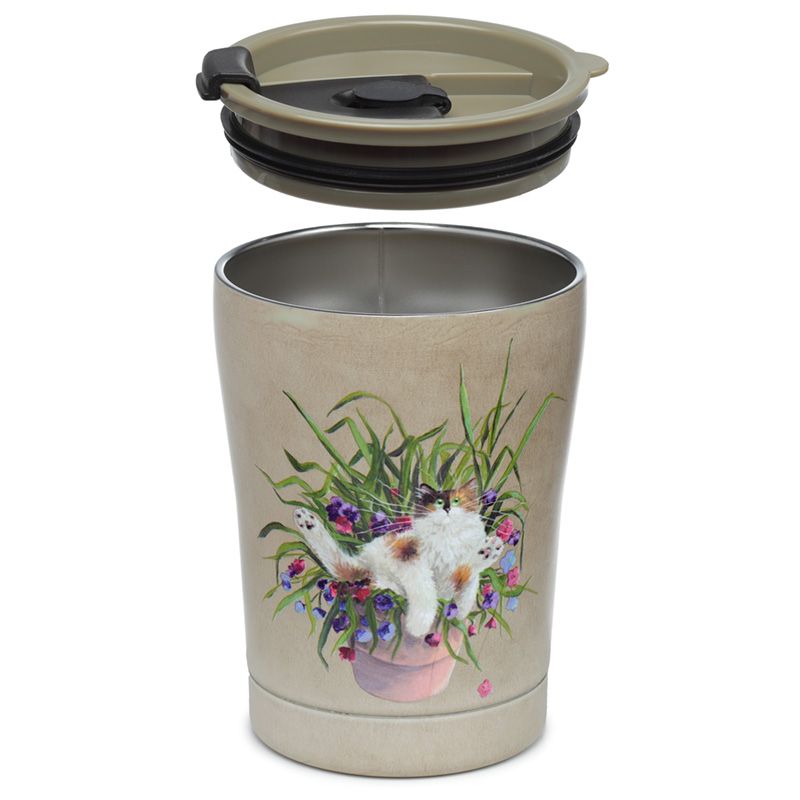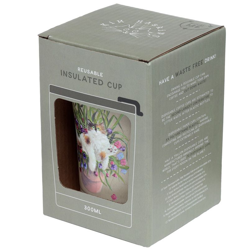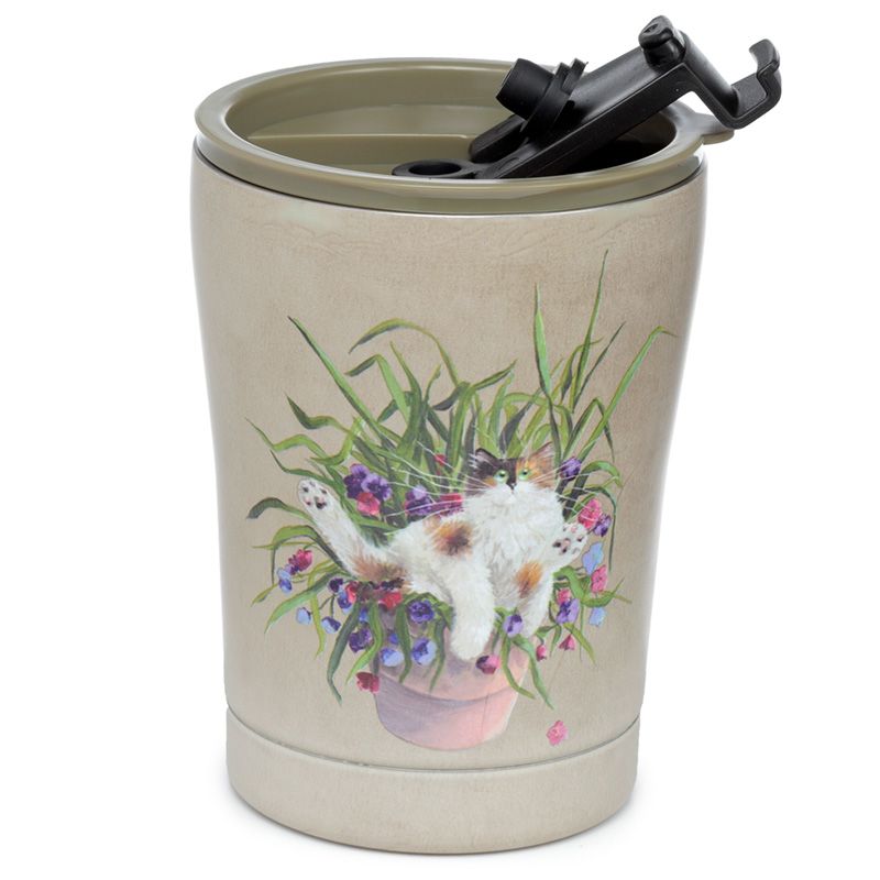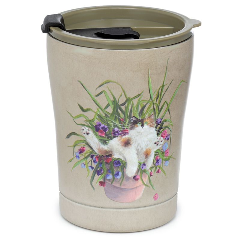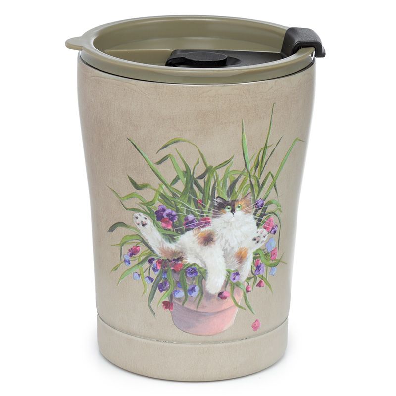 Kim Haskins Cat in Plant Pot Green Hot & Cold Insulated Cup 300ml