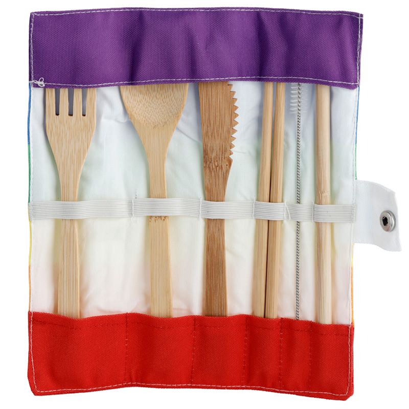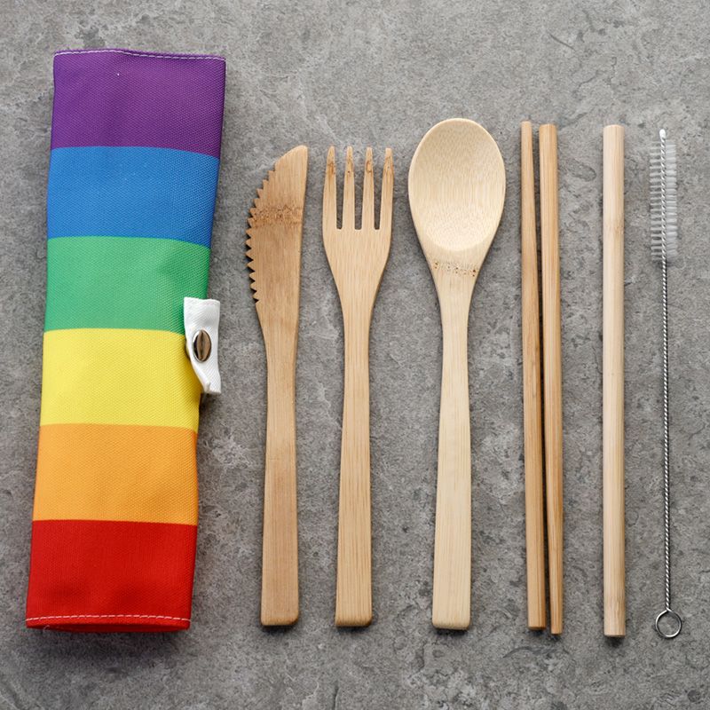 Somewhere Rainbow Stripes 100% Natural Bamboo Cutlery 6 Piece Set
