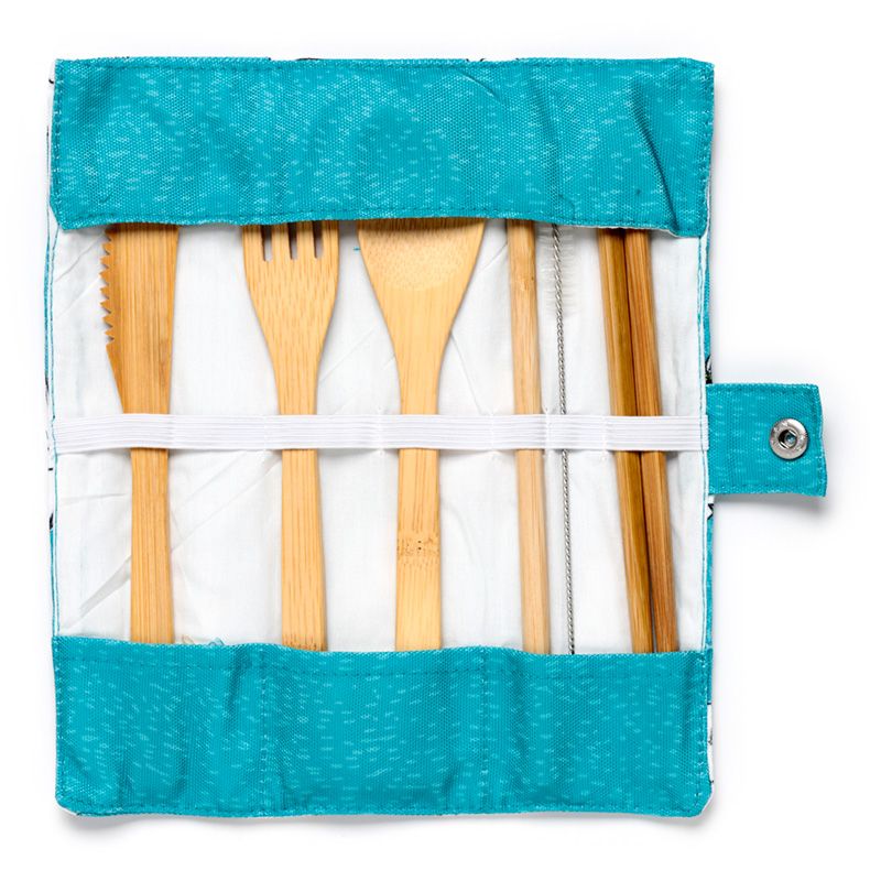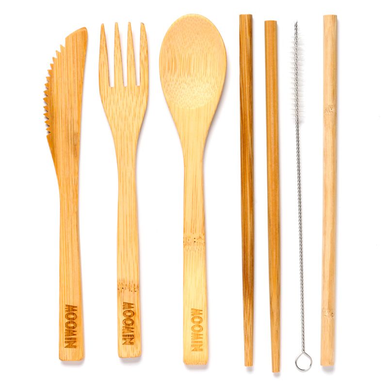 - Eco Credentials: Durable, lightweight and reusable, this cutlery set is made from 100% natural bamboo. The straw cleaner is made from metal and nylon.