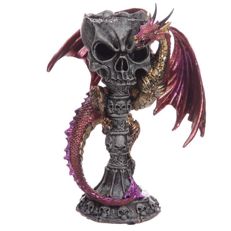 Dark Legends Skull Goblet Tea Light Candle Holder Dragon