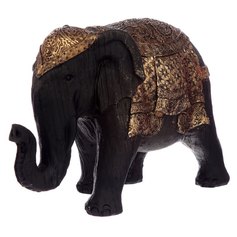 Brushed Black & Gold Medium Thai Elephant Figurine