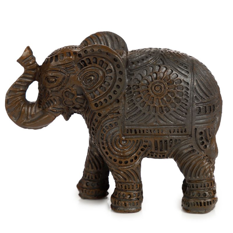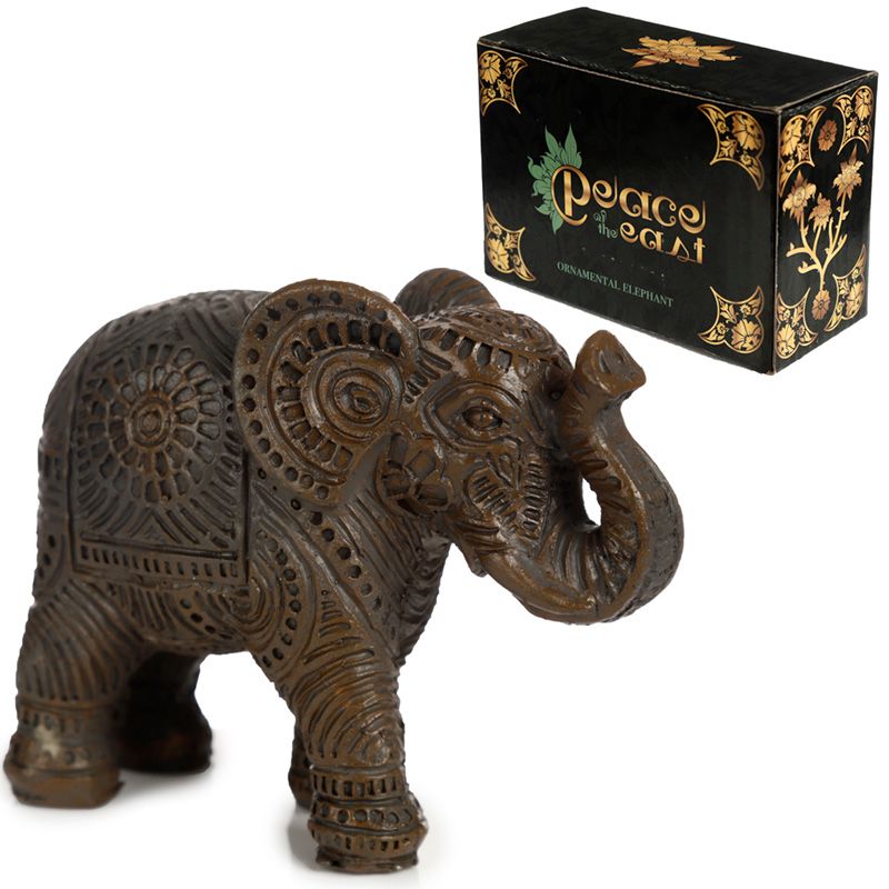 Peace of the East Dark Brushed Wood Effect Small Thai Elephant Figurine