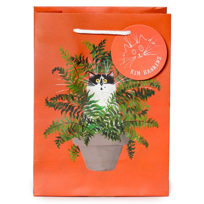 Kim Haskins Floral Cat in Fern Red Gift Bag Medium