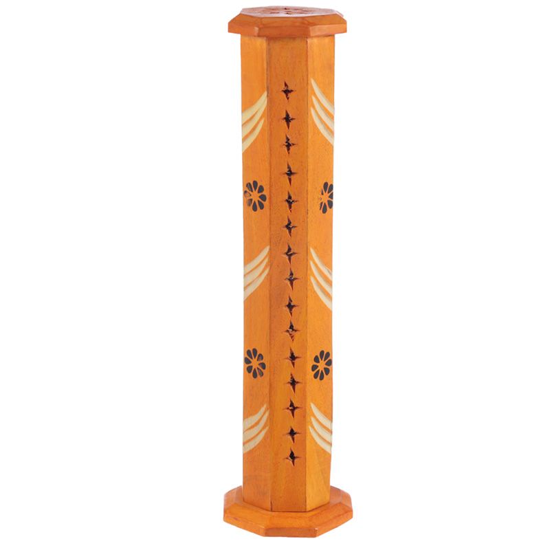 Mango Wood Bold Ashcatcher Incense Tower Burner with Flower Fretwork