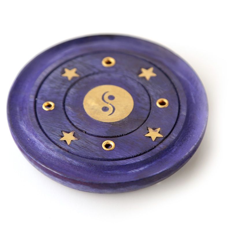 Mango Wood Yin Yang Round Purple Ashcatcher Incense Burner