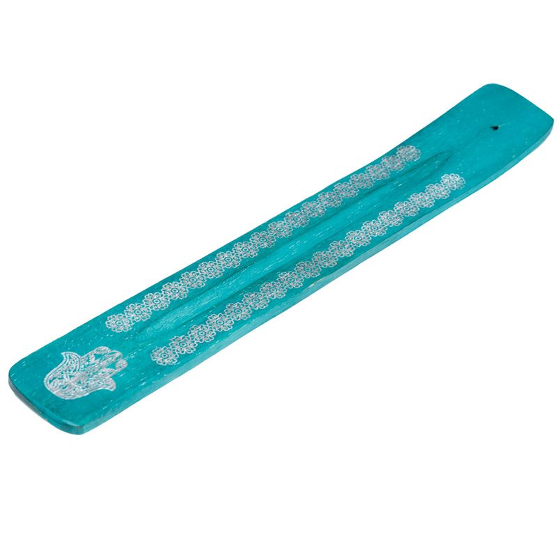 Mango Wood Hamsa Palm Inlay Ashcatcher Incense Sticks Burner