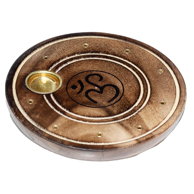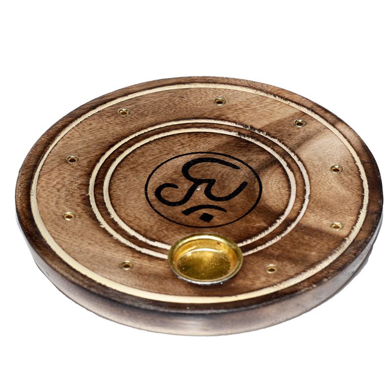 Mango Wood Round Om Ashcatcher Incense Burner
