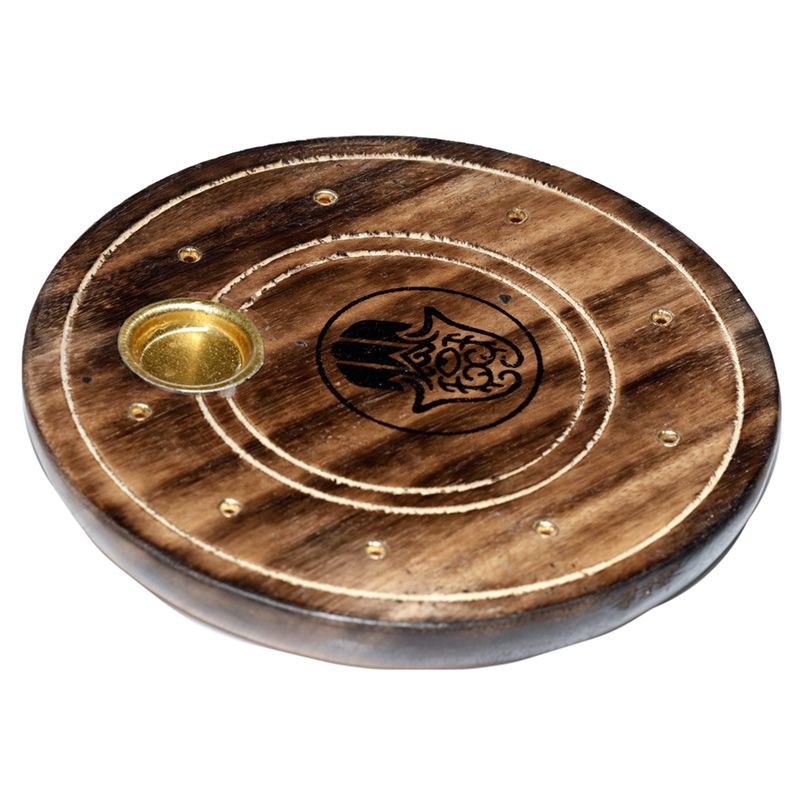 Mango Wood Round Hamsa Ashcatcher Incense Burner