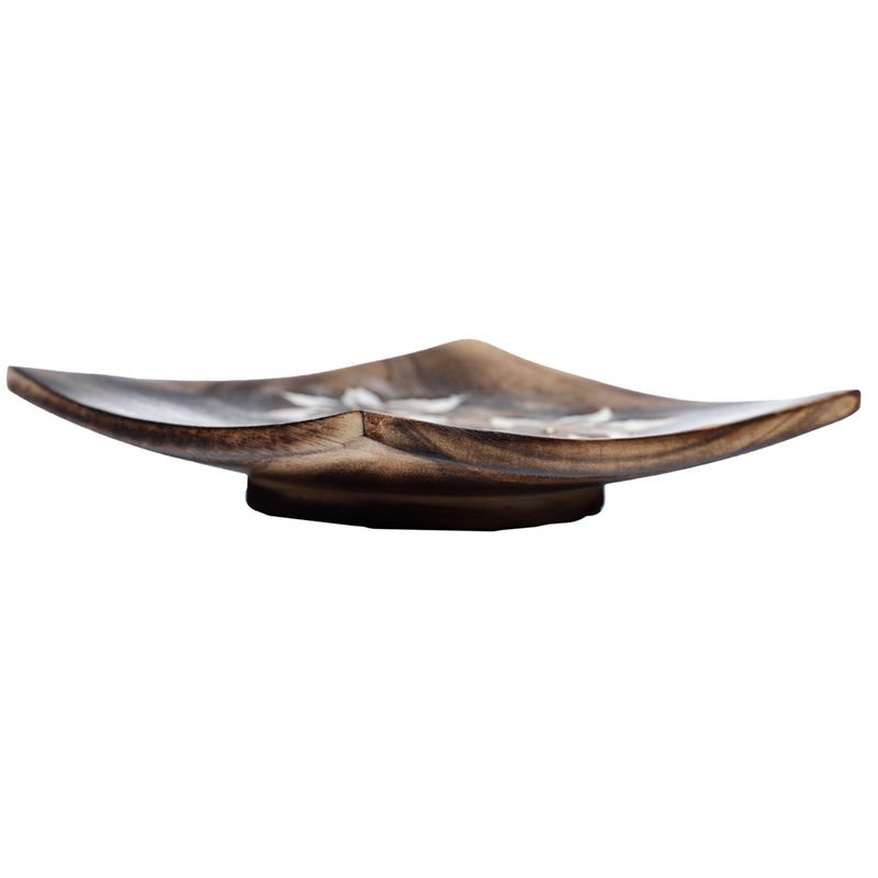 Mango Wood Square Carved Flowers Ashcatcher Incense Sticks Burner