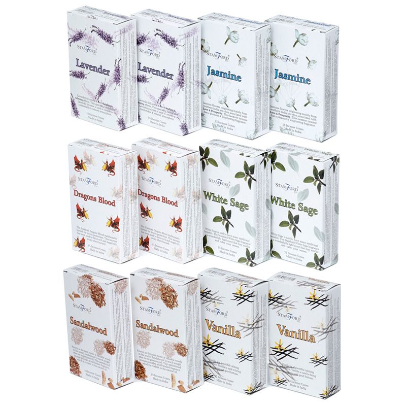 37354 Stamford Incense Cones 12 Pack Variety Set Vanilla & Floral