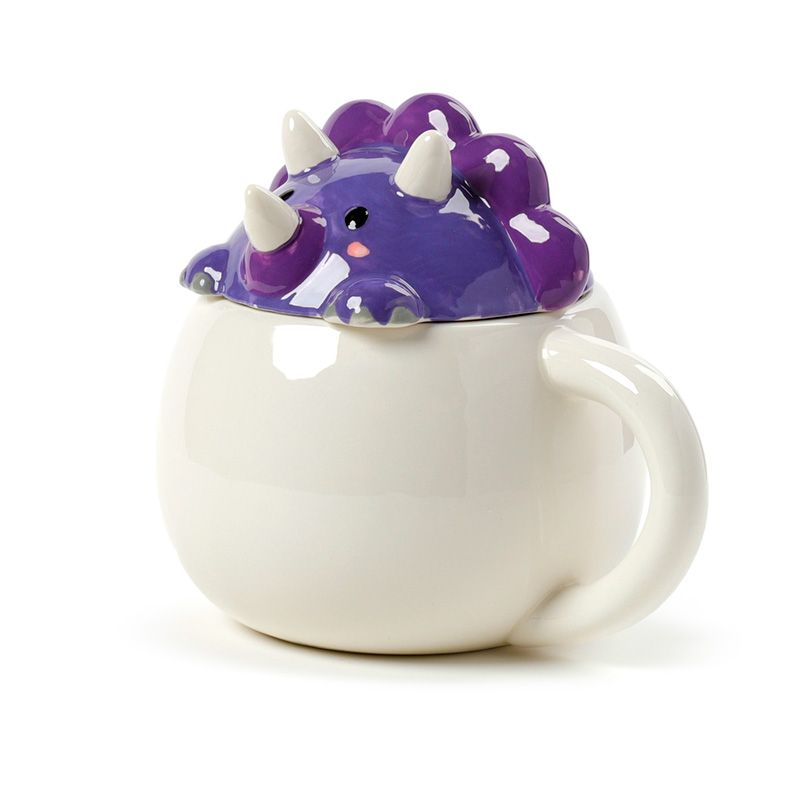 Adoramals Purple Dinosaur Peeping Lid Ceramic Lidded Animal Mug