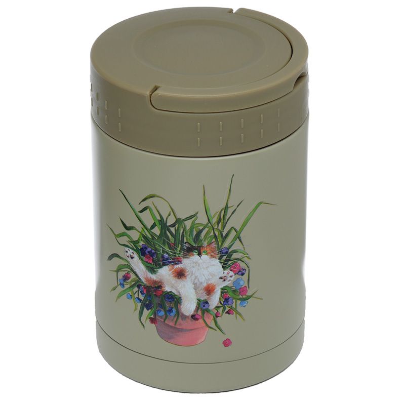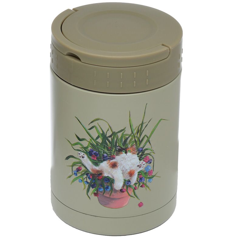 Kim Haskins Cat in Plant Pot Hot & Cold Lunch Pot 500ml