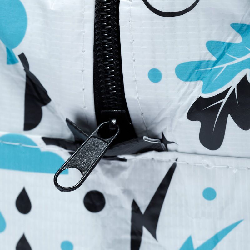 - Material: Recycled Plastic Bottles (RPET 140gsm) and Polypropylene Webbing Handles