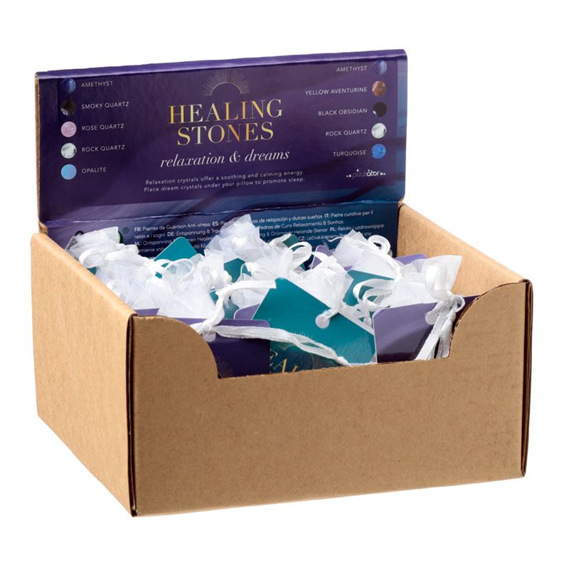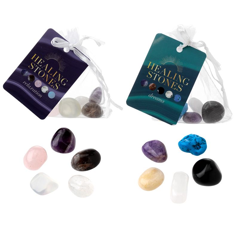 - Stones: Relaxation (Amethyst, Smokey Quartz, Rose Quartz, Rock Quartz, Opalite) - Dreams (Amethyst, Yellow Aventurine, Black Obsidian, Rock Quartz, Turquoise)