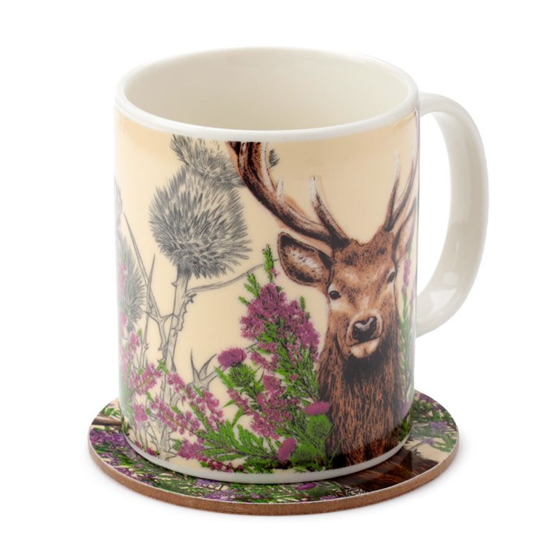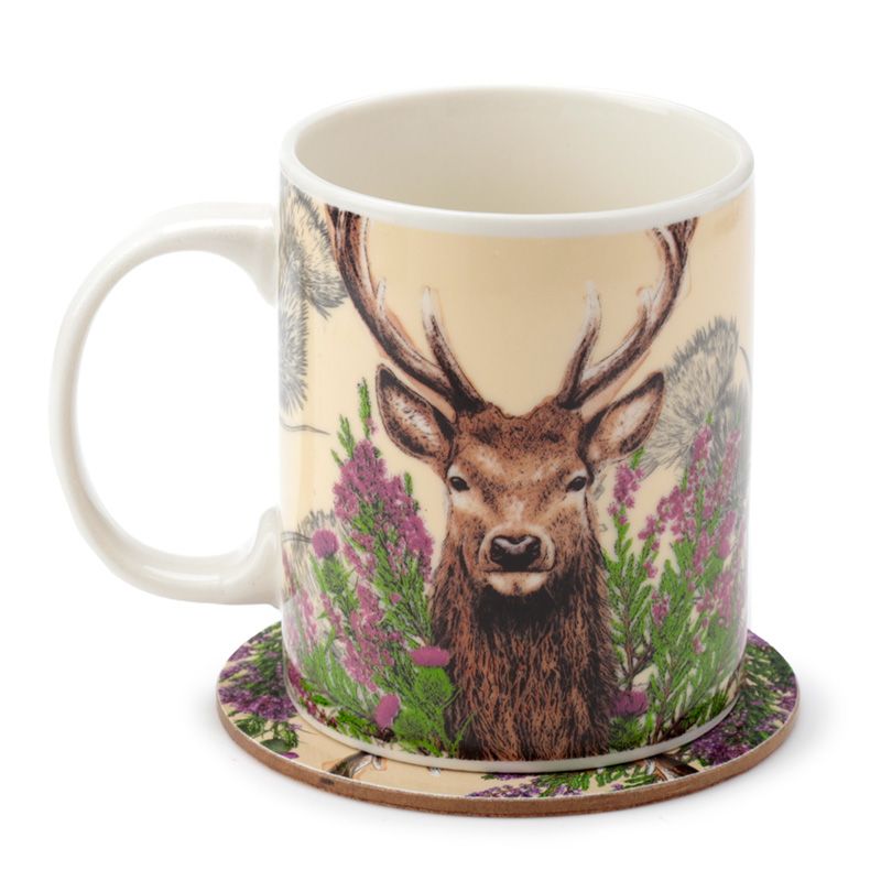 Wild Stag Christmas Porcelain Mug & Coaster Set