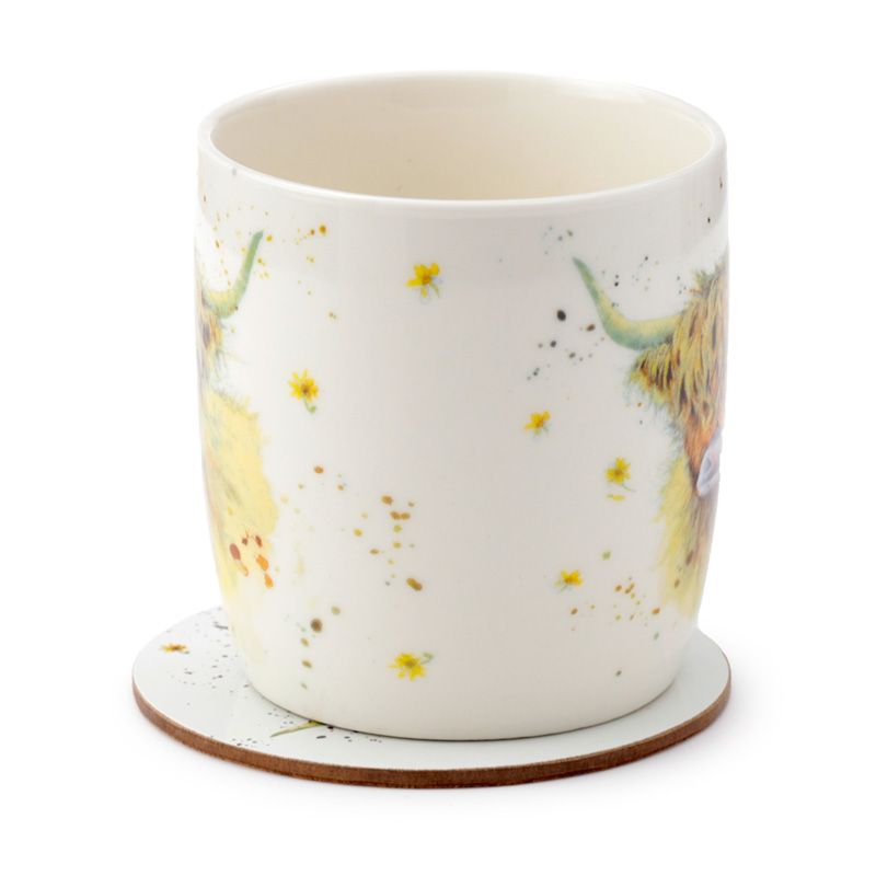 Jan Pashley Highland Coo Cow Porcelain Mug & Coaster Set