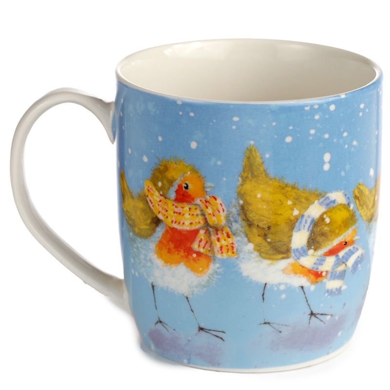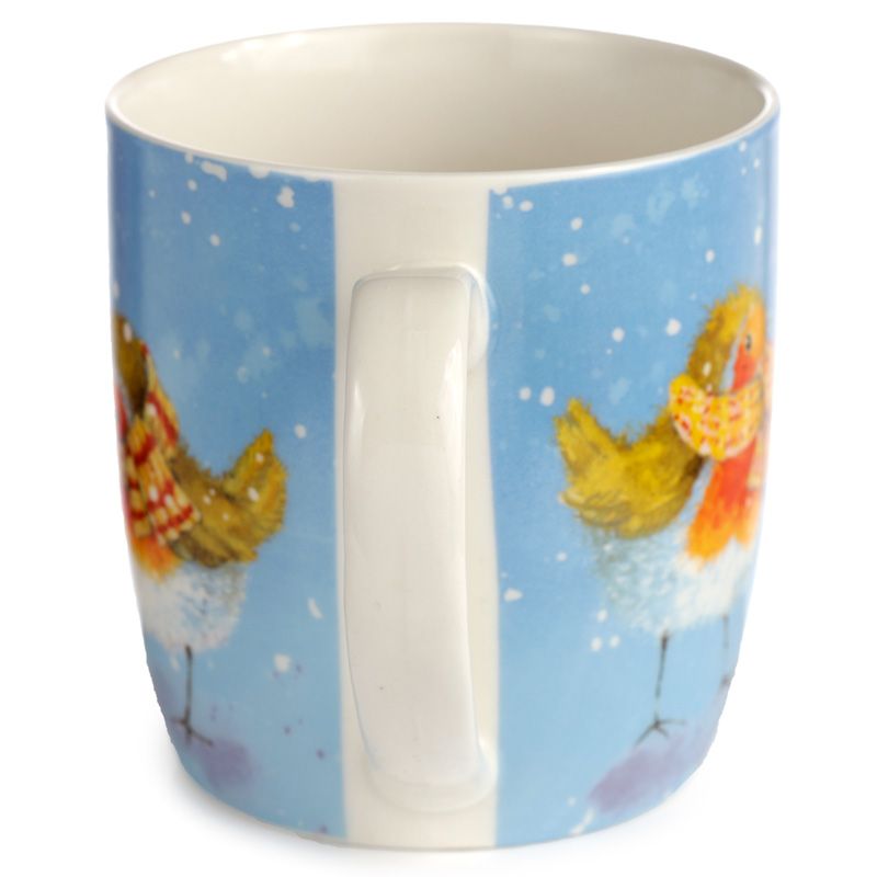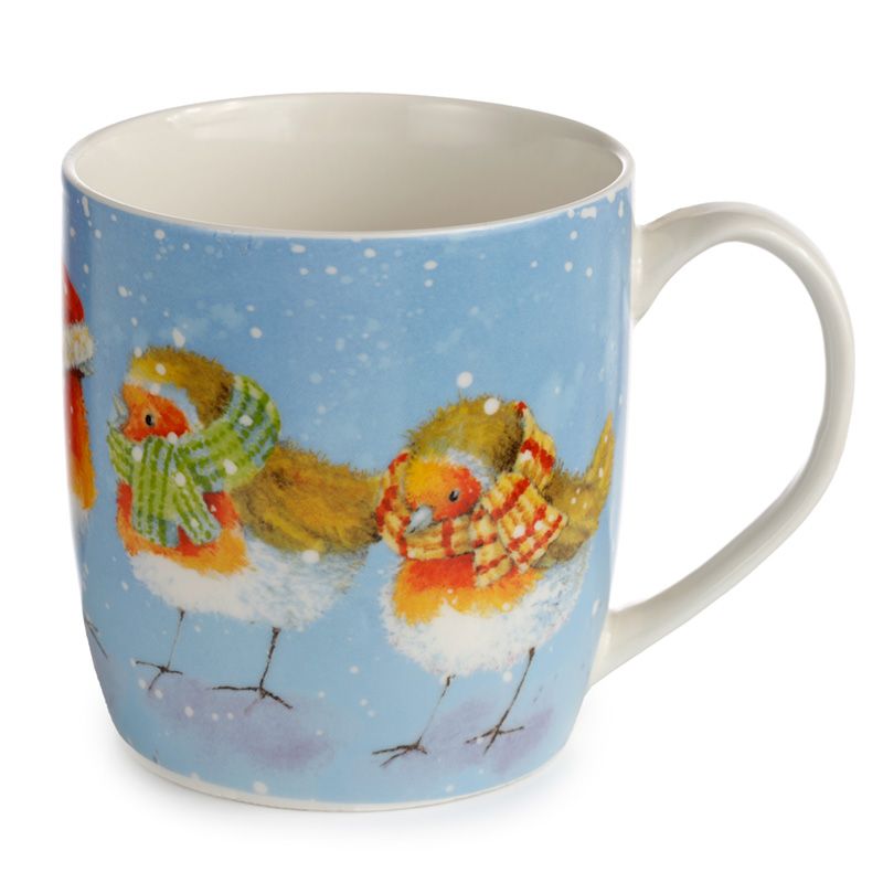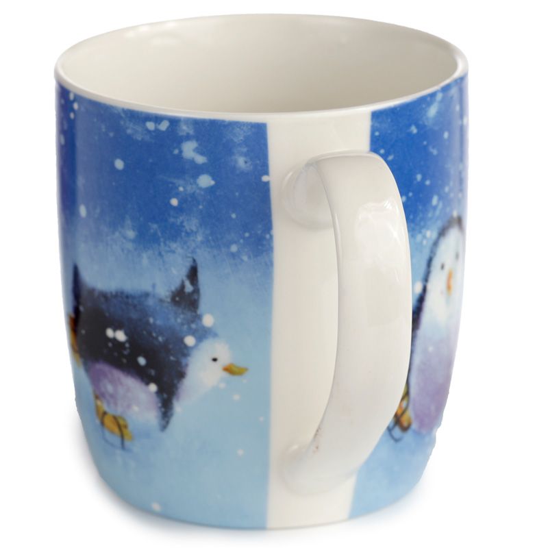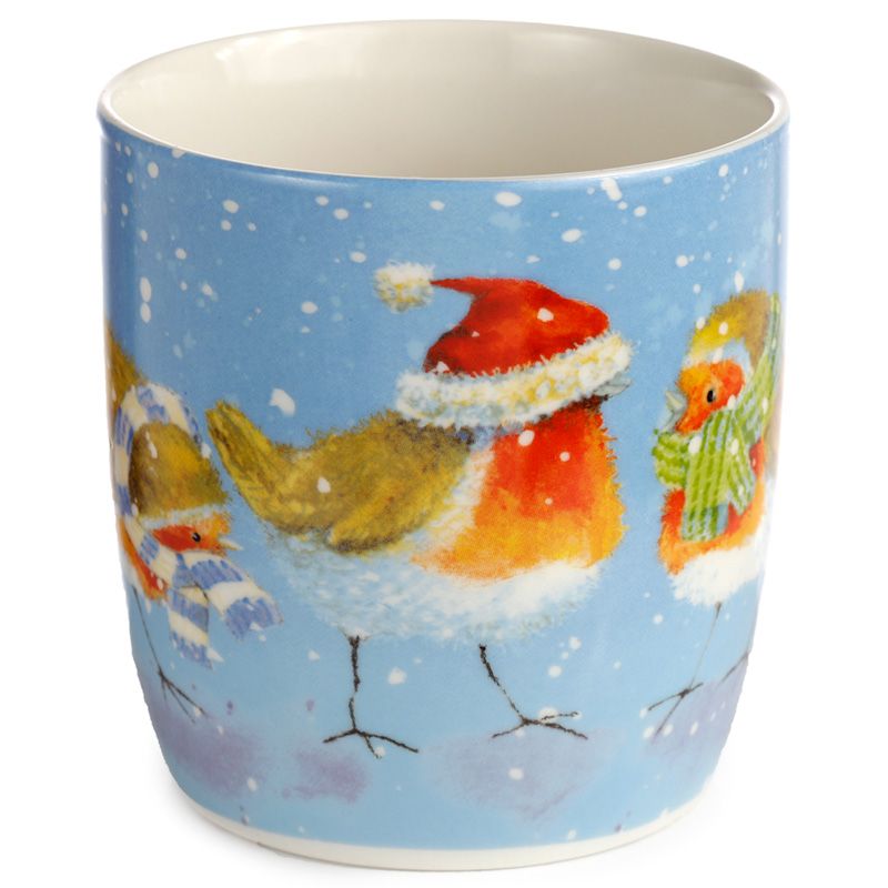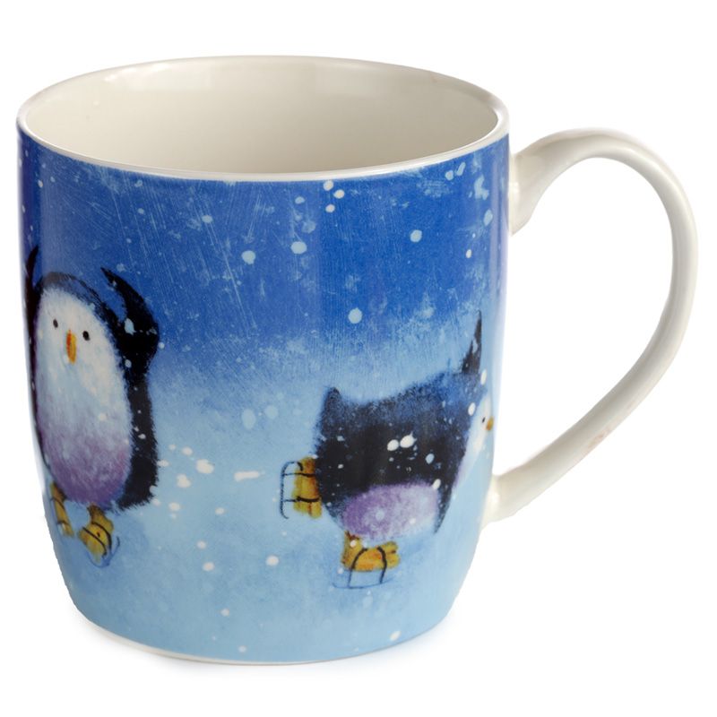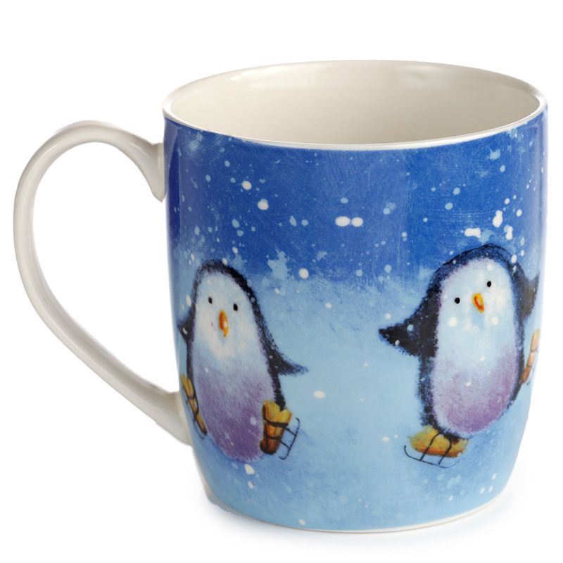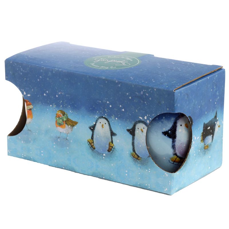 Jan Pashley Christmas Robin & Skating Penguins Set of 2 Porcelain Mugs