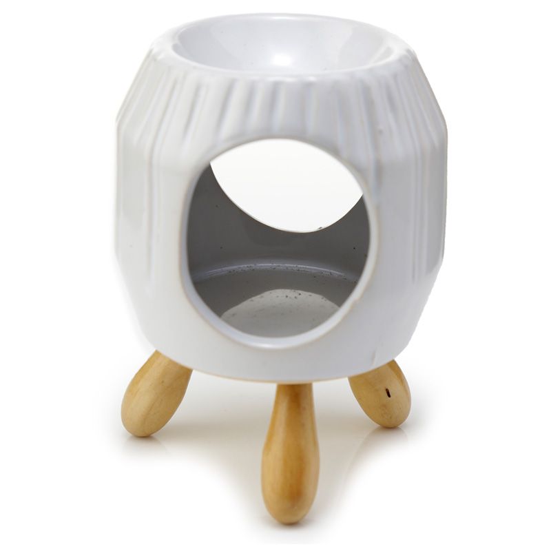 Eden Abstract Ridged White Ceramic Oil Burner with Feet