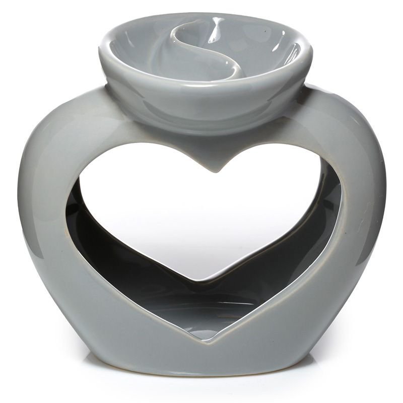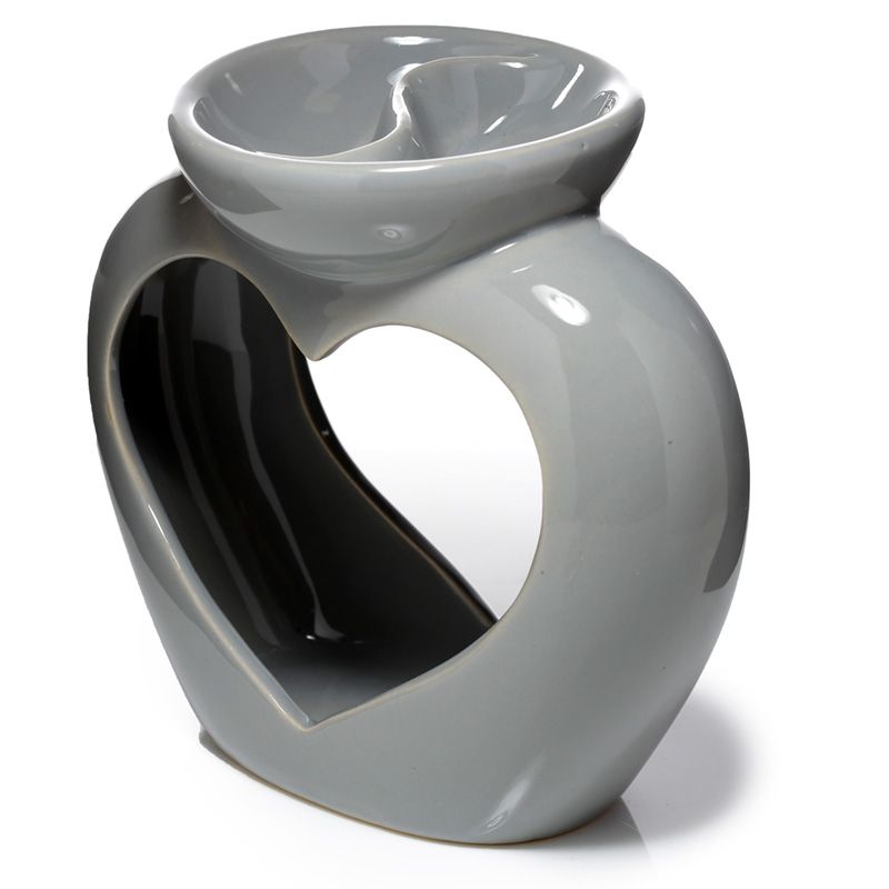 Eden Grey Ceramic Heart Shaped Double Dish Oil & Wax Burner