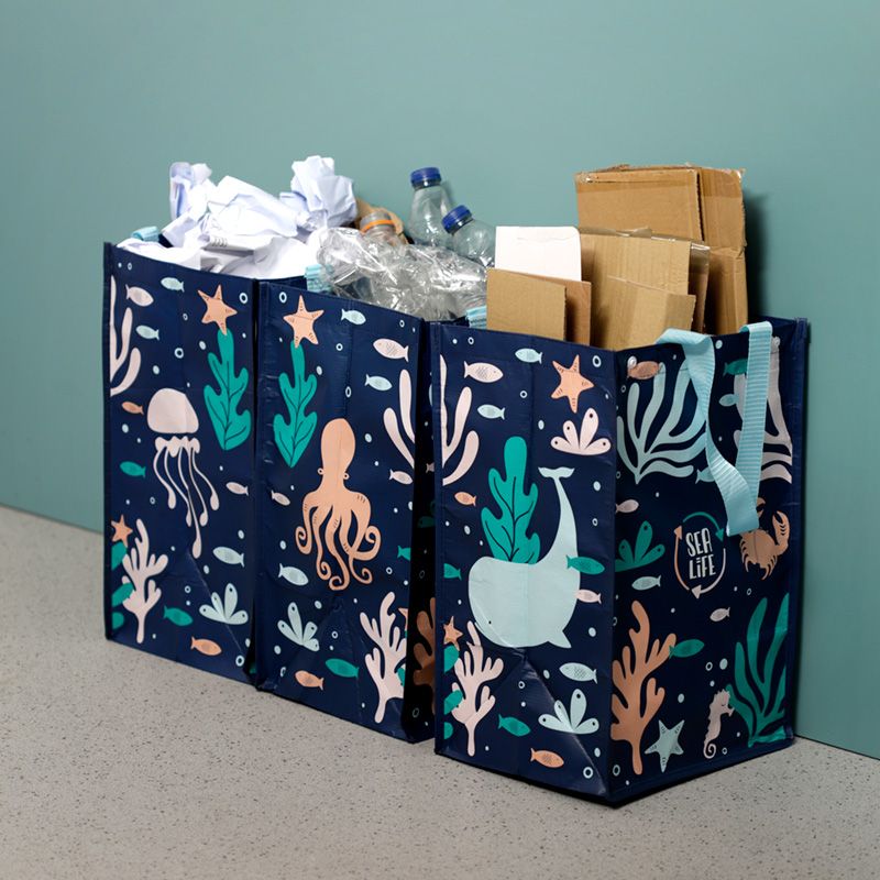 Set of 3 RPET Storage/Recycling Bags Eco Sealife