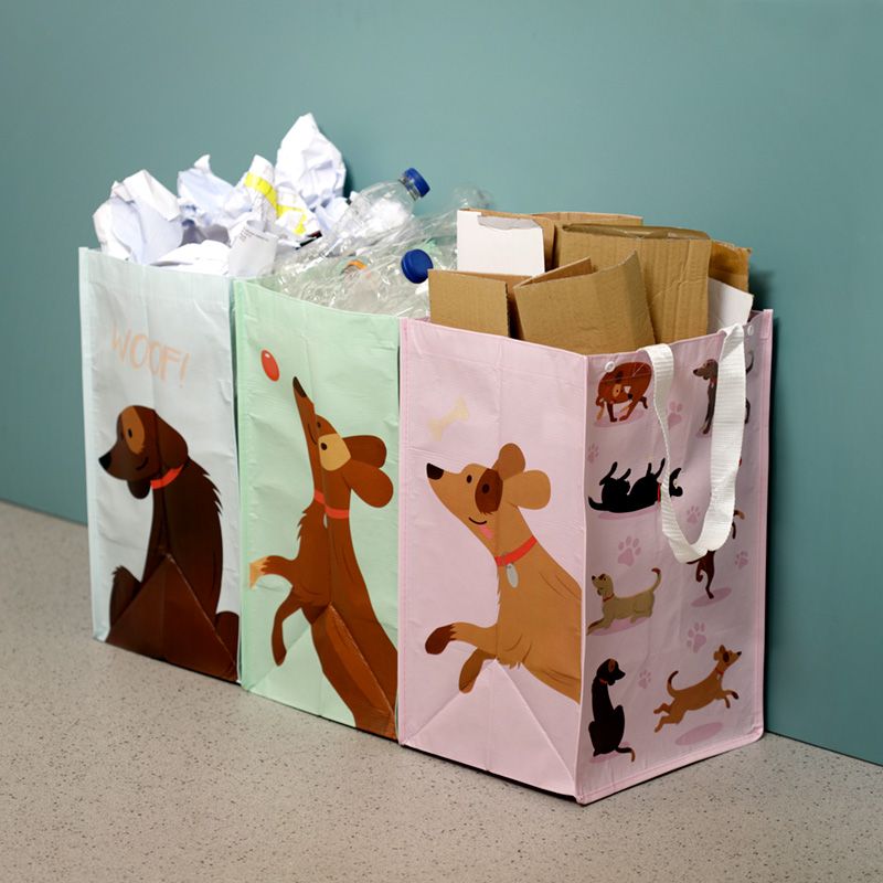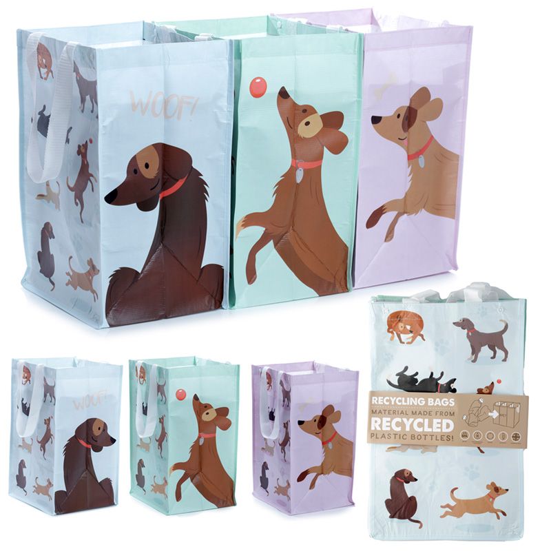 Set of 3 RPET Storage/Recycling Bags Catch Patch Dog