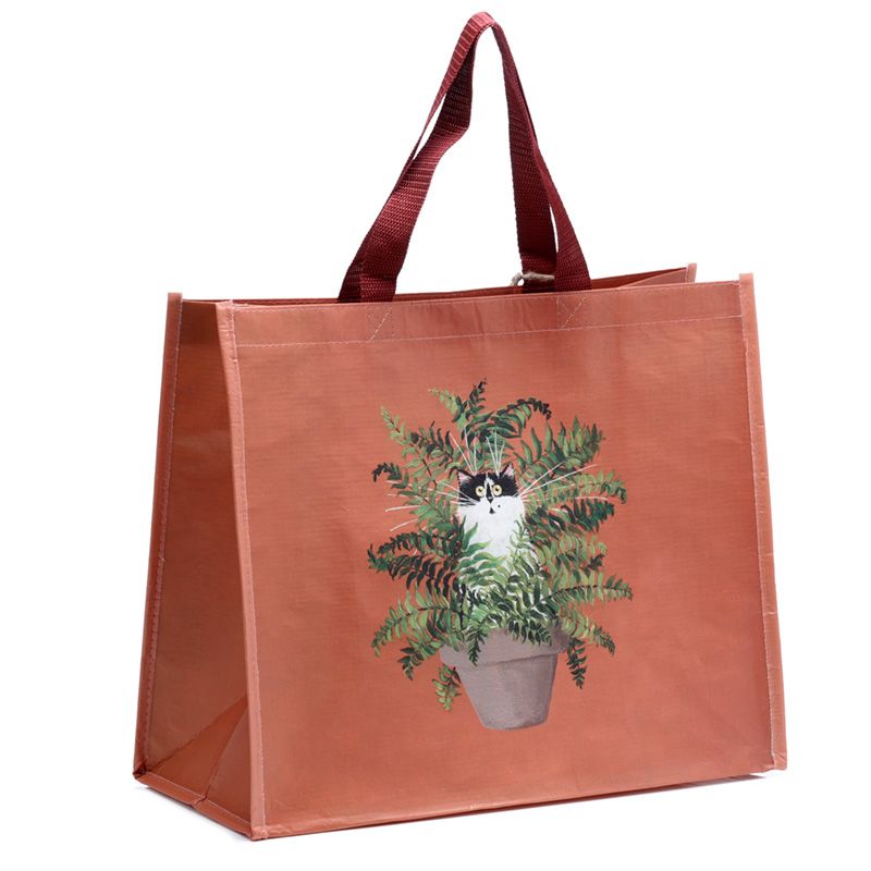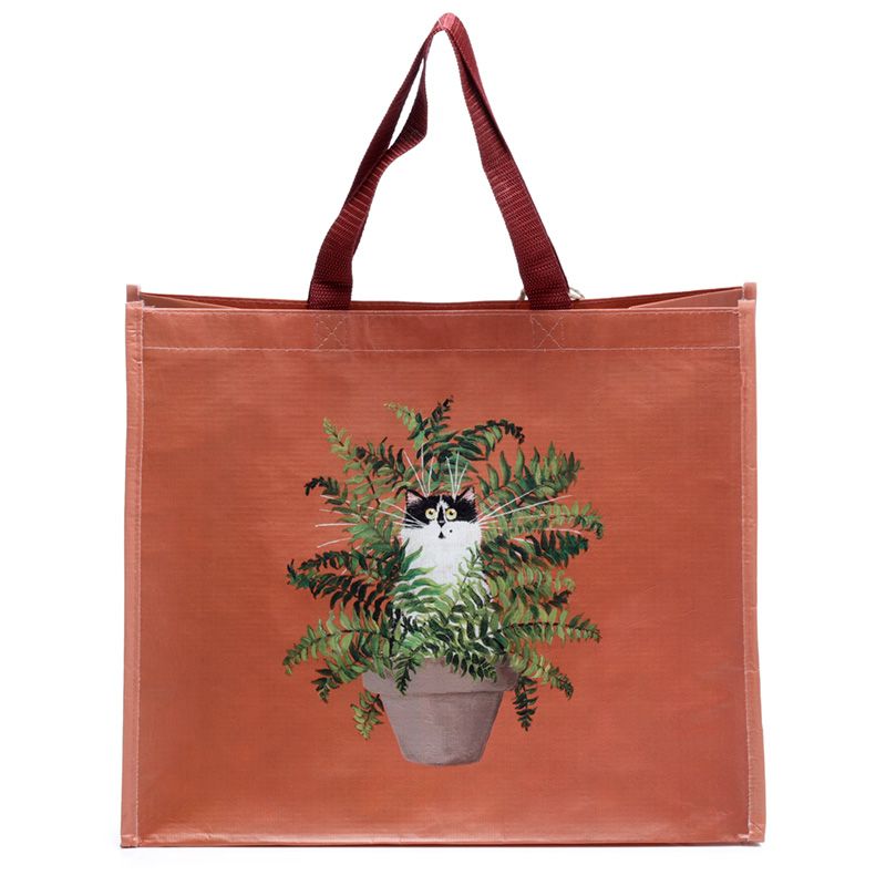 Kim Haskins Floral Cat in Fern Red RPET Reusable Shopping Bag