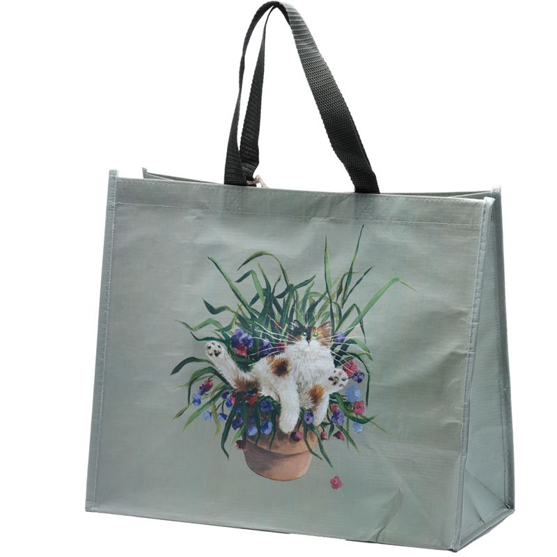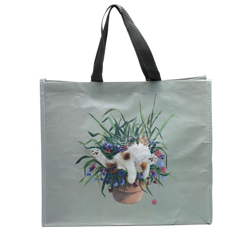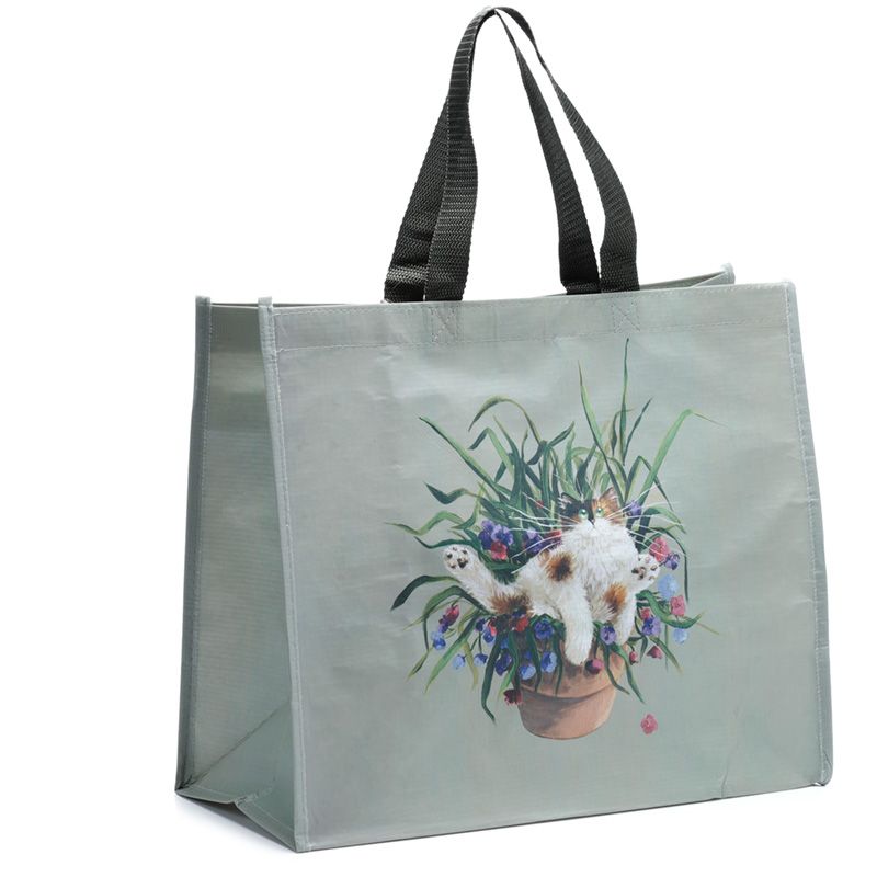 Kim Haskins Floral Cat in Plant Pot Green RPET Reusable Shopping Bag