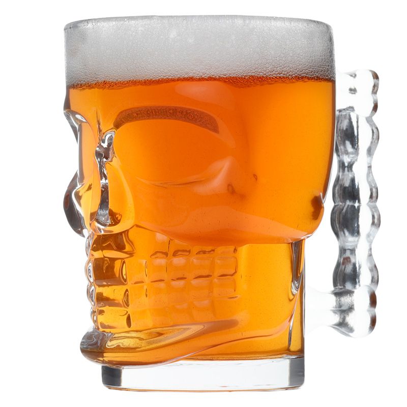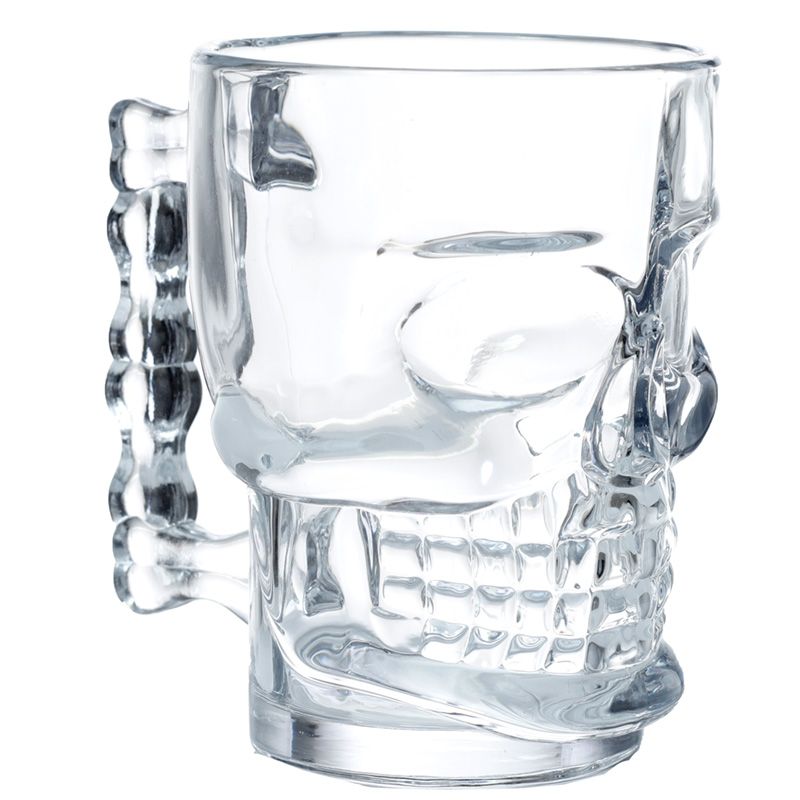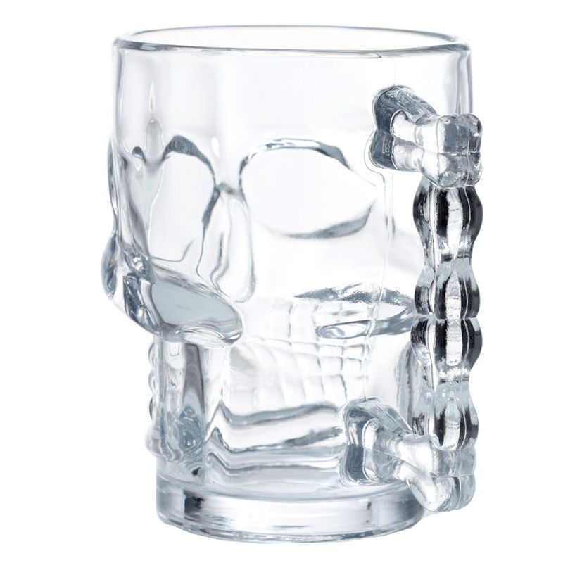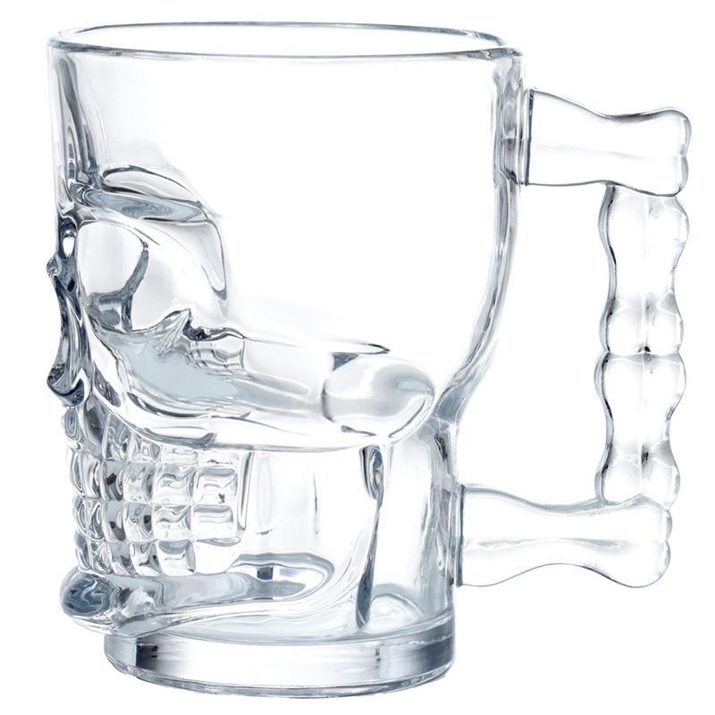 Decorative Skulls and Roses Glass Skull Head Shaped Stein Tankard