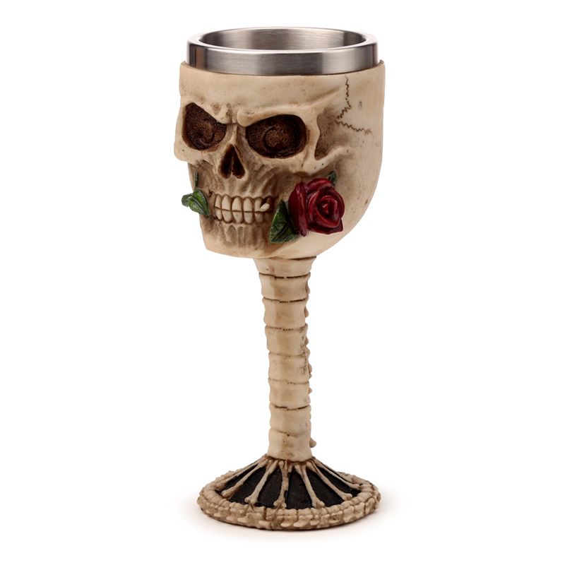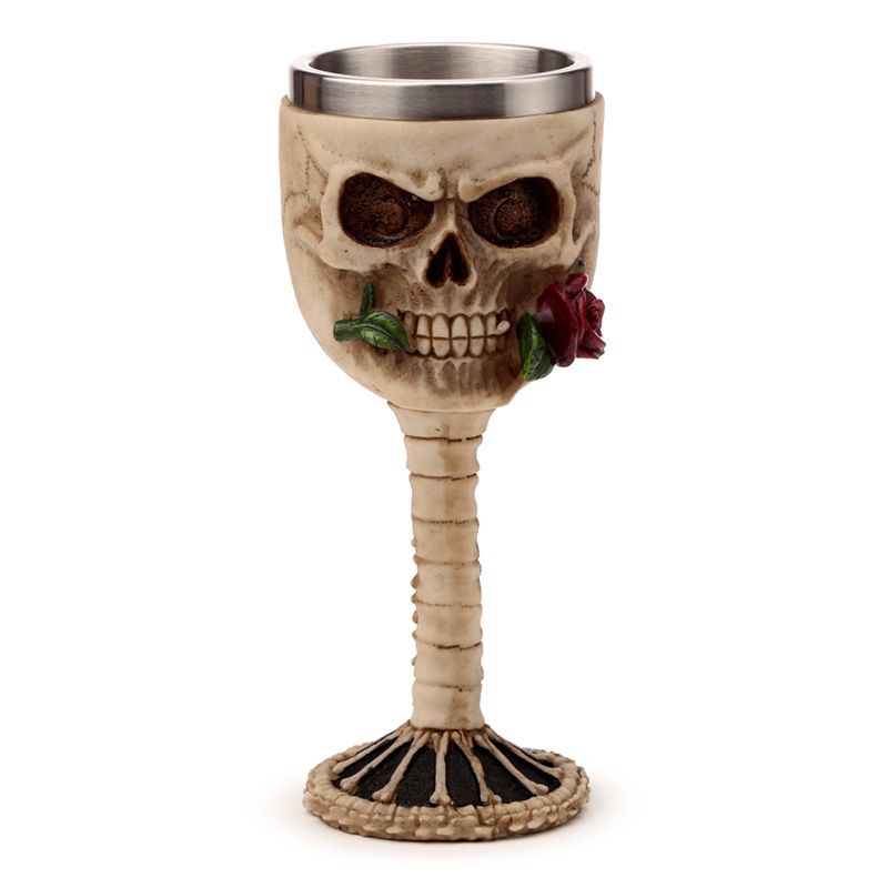 Decorative Skulls with Red Rose in Mouth Goblet