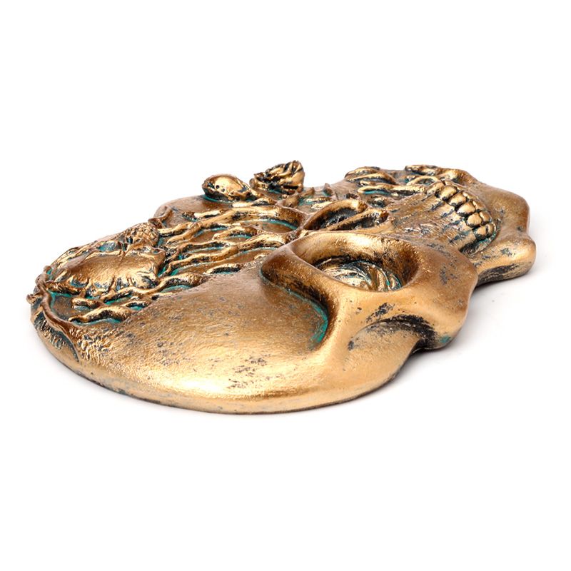 Skull Shaped Ashcatcher Incense Burner with Roses