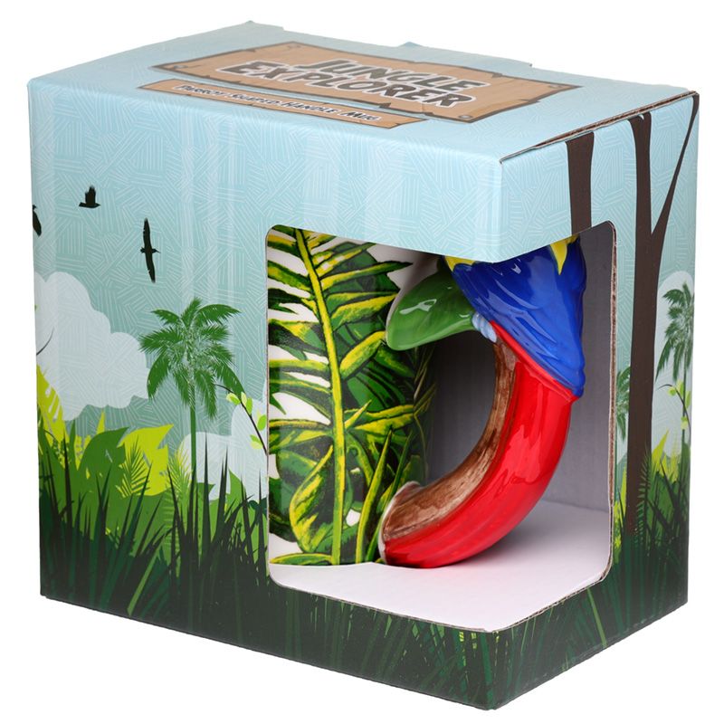 Parrot with Jungle Decal Ceramic Shaped Handle Mug