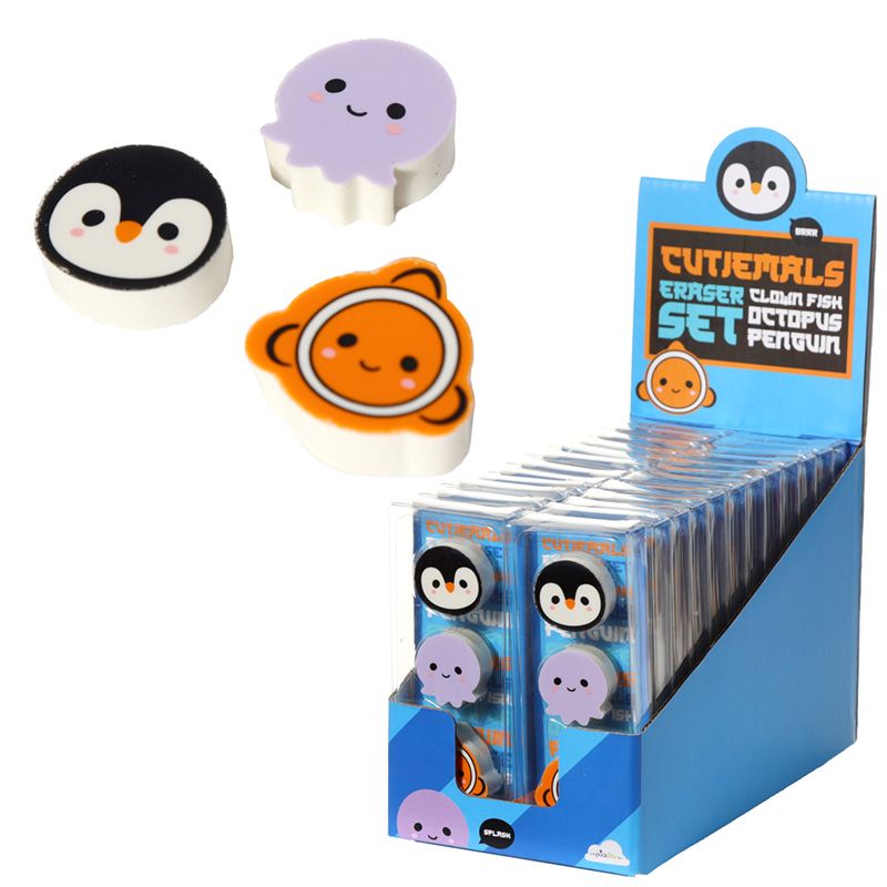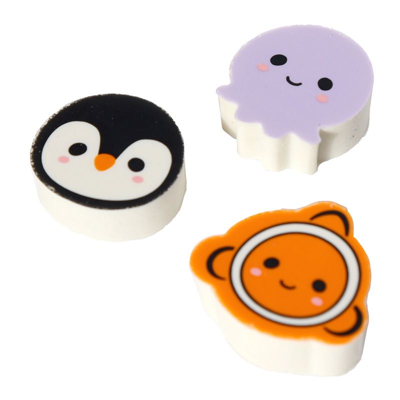 Adoramals Penguin, Octopus & Clown Fish 3 Piece Sealife Eraser Set