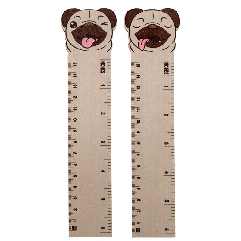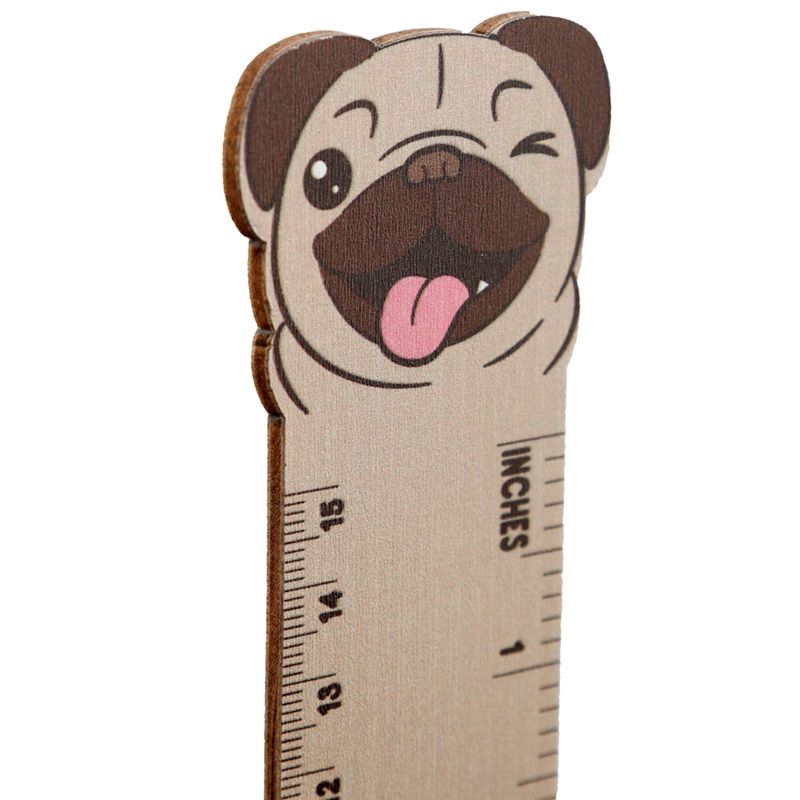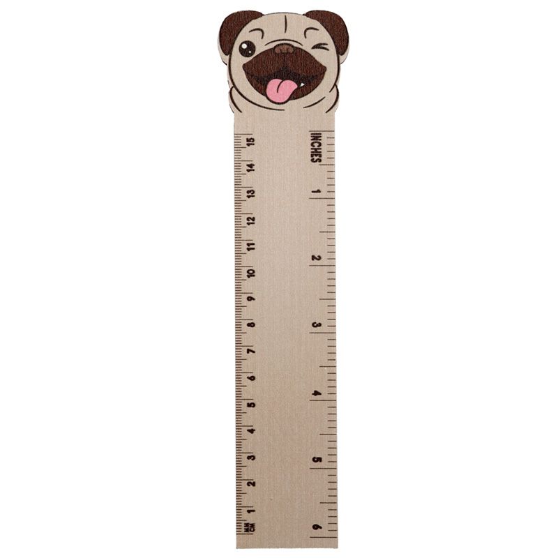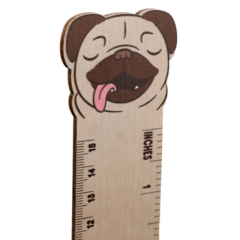 Mopps Pug Shaped Top Wooden Ruler (15cm)