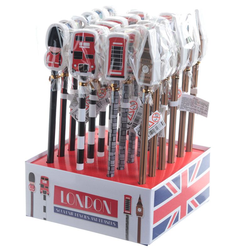 London Souvenir Guardsman, Bus, Telephone Box, Big Ben Pencil & Eraser Topper