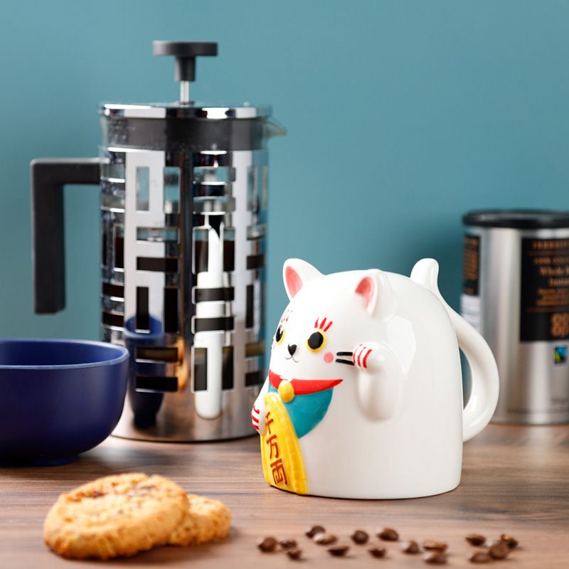 Maneki Neko Lucky Cat Upside Down Ceramic Shaped Mug