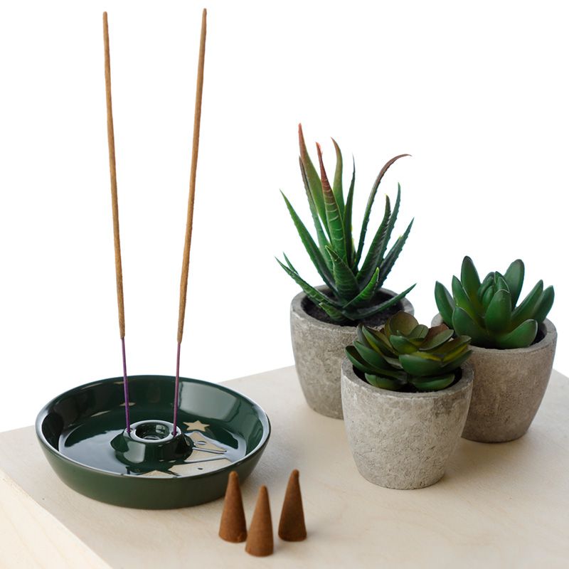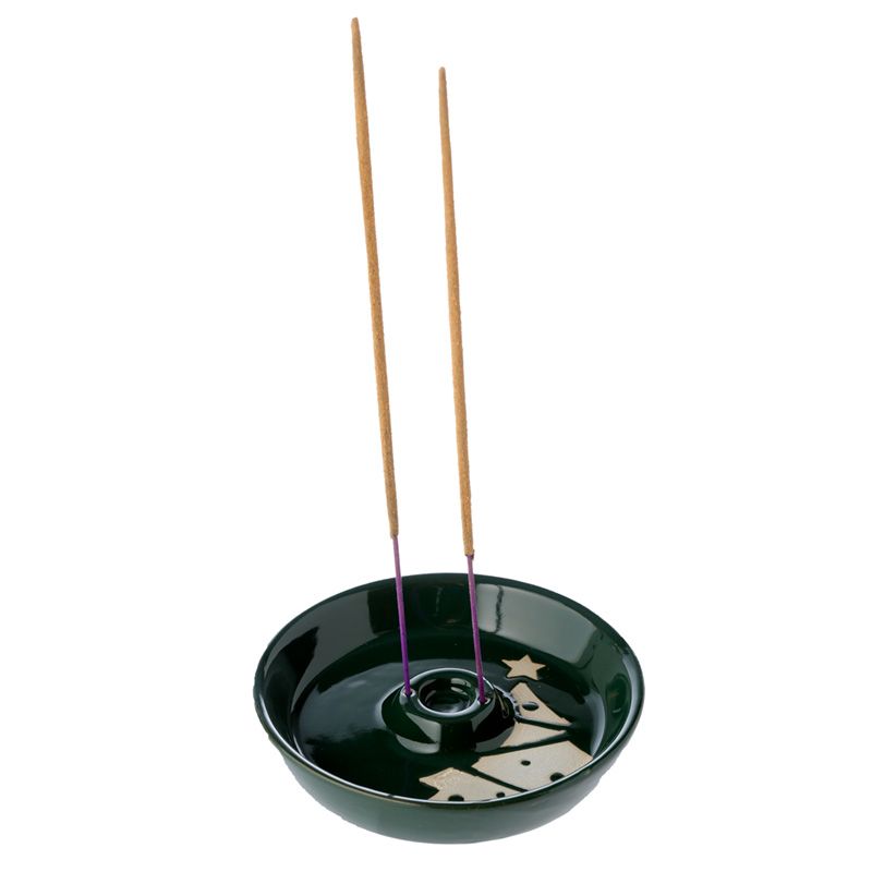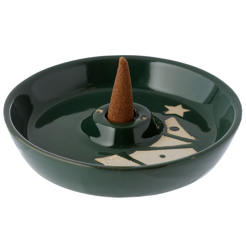 Christmas Tree Green Stoneware Ashcatcher Incense Burner Dish