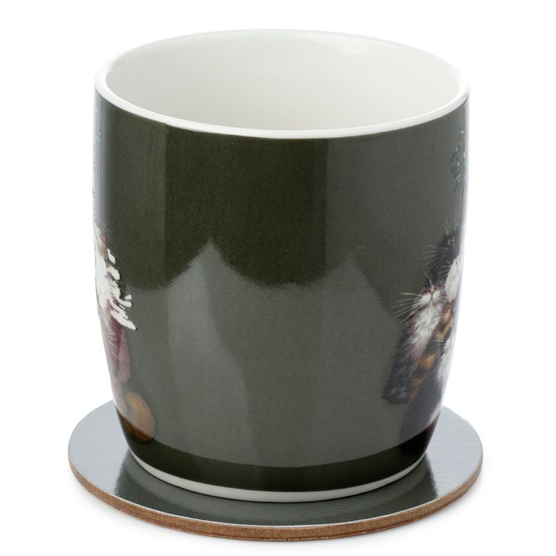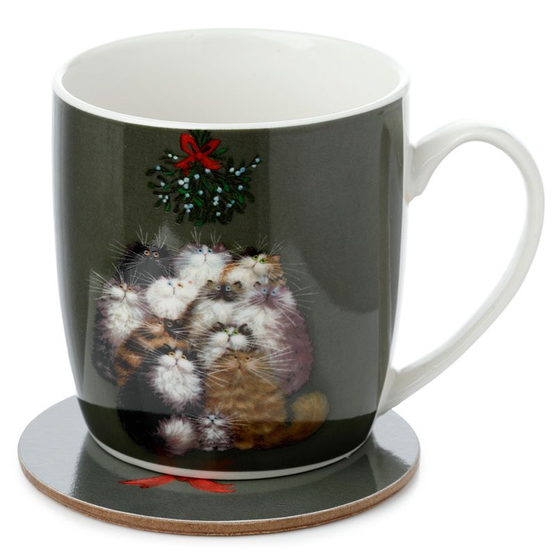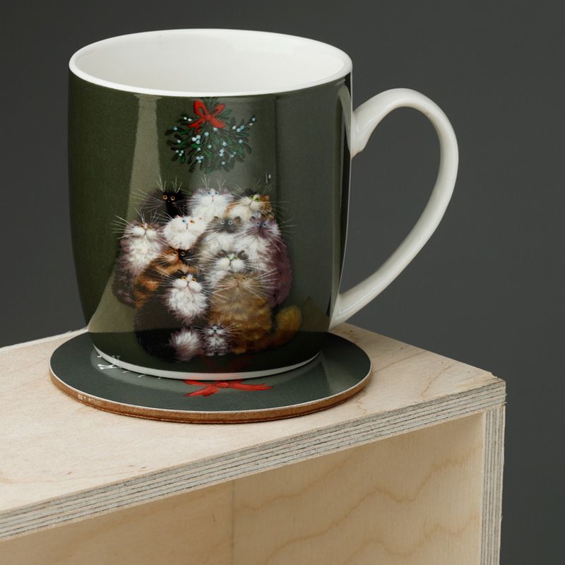Kim Haskins 12 Cats of Christmas Porcelain Mug & Coaster Set