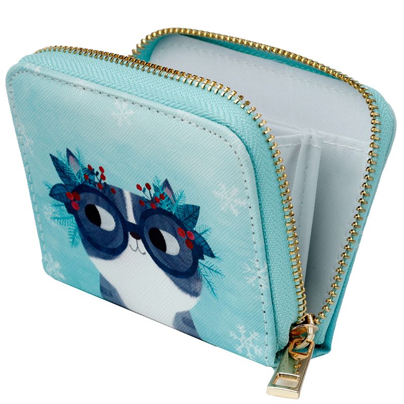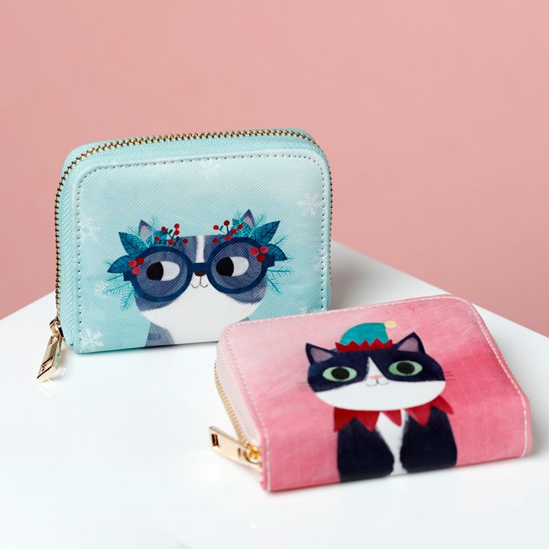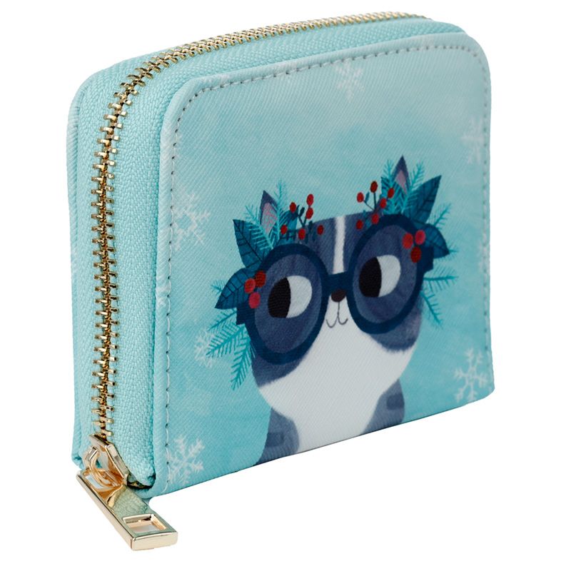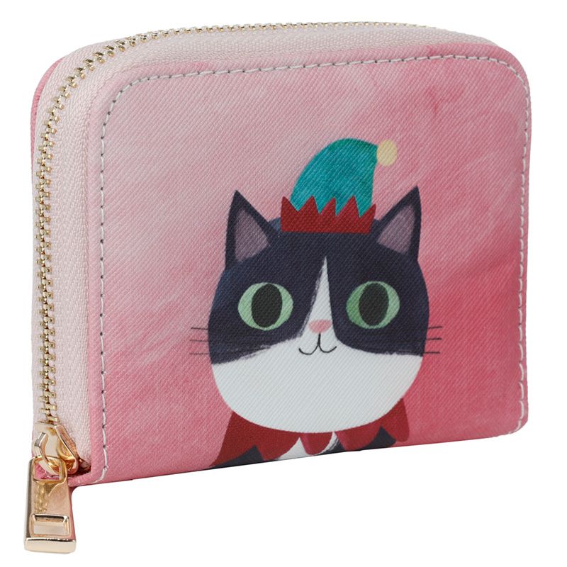 Angie Rozelaar Planet Cat Christmas Zip Around Small Wallet Purse